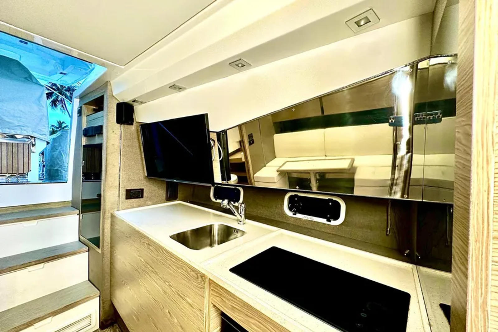 Powering the Azimut 40 Verve are three robust engines, delivering a combined 1,050 horsepower. With just 575 engine hours, these engines offer reliable performance and plenty of life for future adventures. The triple engine setup ensures exhilarating acceleration, smooth cruising, and impressive handling, whether you are navigating coastal waters or heading offshore. The 40 Verve’s advanced hull design enhances stability and efficiency, allowing you to enjoy a thrilling ride while maintaining control and comfort. This cruiser boat for sale is engineered for those who appreciate both speed and precision on the water.