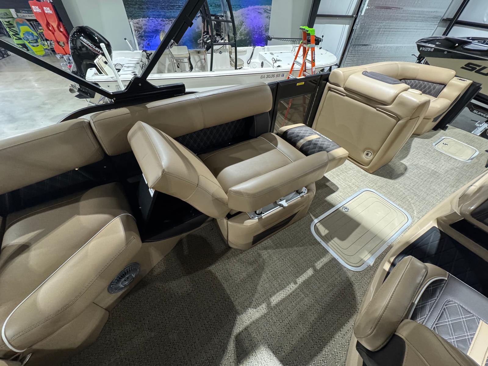 The 2025 Barletta Lusso L23M is a 25.5-foot pontoon that exemplifies modern design and engineering. As a used pontoon boat, it offers the unique advantage of high-end features at a more accessible price point, making it an attractive option for those looking to maximize value without compromising on quality. The Lusso L23M’s spacious layout and elegant lines make it a head-turner at any marina or lake, while its robust construction ensures lasting durability for years of enjoyment.