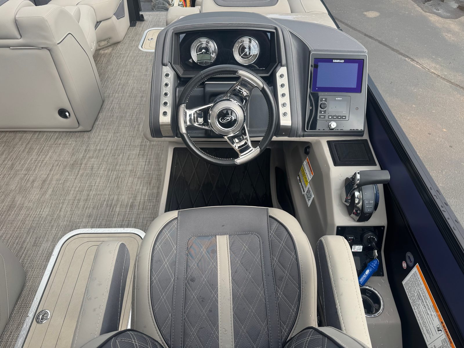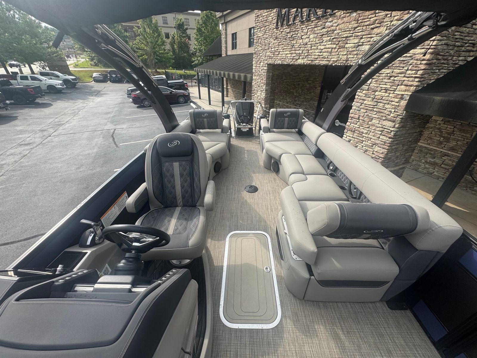 The 2023 Barletta Lusso L25MA stands out as a premier pontoon boat, measuring an impressive 27.42 feet in length. This used pontoon boat is in excellent condition, with only 41 engine hours, ensuring you get a nearly-new vessel at a fantastic value. Barletta is renowned for its commitment to quality, and the Lusso L25MA is a testament to their dedication to craftsmanship, comfort, and innovation. With its spacious layout and refined finishes, this pontoon boat is designed to accommodate both intimate gatherings and larger parties, offering ample room for relaxation and entertainment.