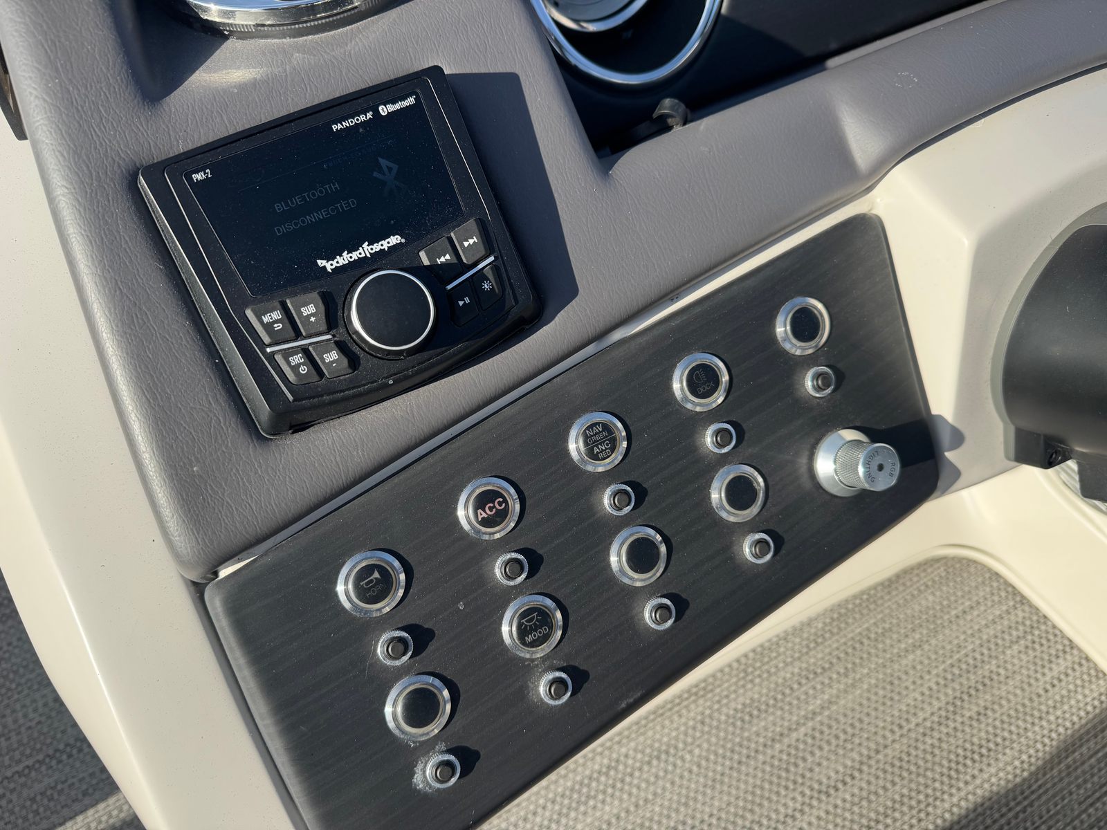 Entertainment features are thoughtfully integrated: an upgraded stereo system (factory or dealer-installed) with Bluetooth connectivity keeps playlists crisp and loud enough for the party, while strategically placed speakers deliver a balanced sound experience across the deck. Optional lighting and ski tow packages give adventurous owners the flexibility to tailor the boat to their favorite water hobbies.