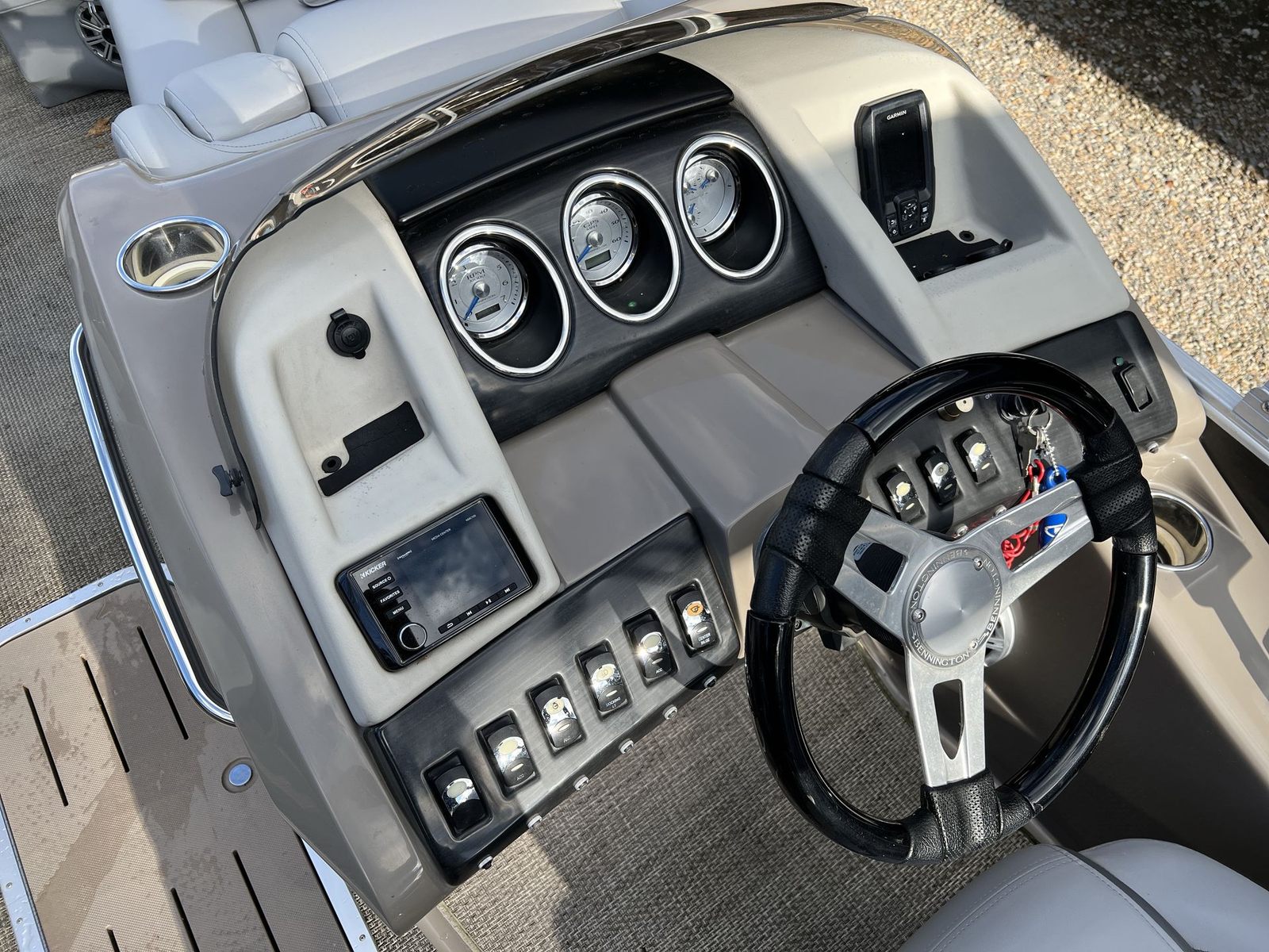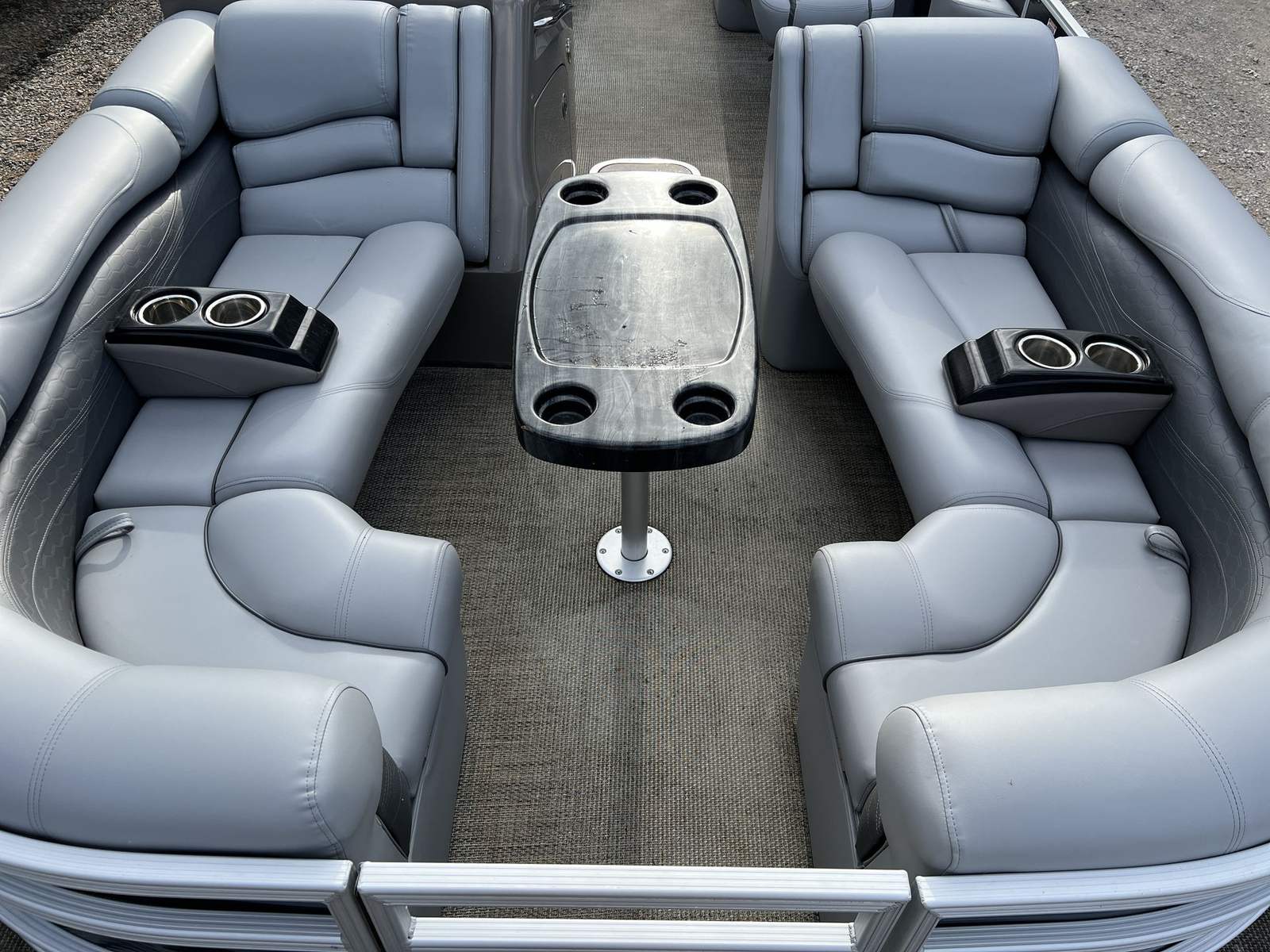 The 2018 Bennington 23 RFB is a 23-foot pontoon that exemplifies the brand’s commitment to quality and comfort. With its spacious layout and thoughtful design, this used pontoon boat offers ample room for relaxation and socializing. The sleek lines and modern aesthetic make it a head-turner at any marina or lake, while its durable construction ensures years of reliable enjoyment. With only 80 engine hours, this Bennington pontoon has been gently used and is ready for many more adventures.