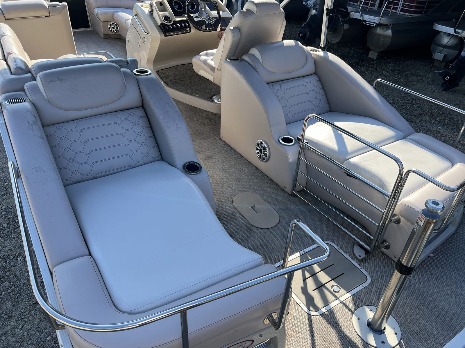 The 2013 Bennington 2575 QCW is designed with comfort and convenience in mind. Its spacious deck layout allows for easy movement and plenty of seating options, making it ideal for social gatherings and family fun. The high-quality construction and attention to detail are evident throughout, from the durable flooring to the stylish upholstery. The pontoon’s generous length provides ample storage for all your boating essentials, ensuring you have everything you need for a day on the water. With its thoughtful design and premium materials, this used pontoon boat offers a luxurious experience at an attractive value.