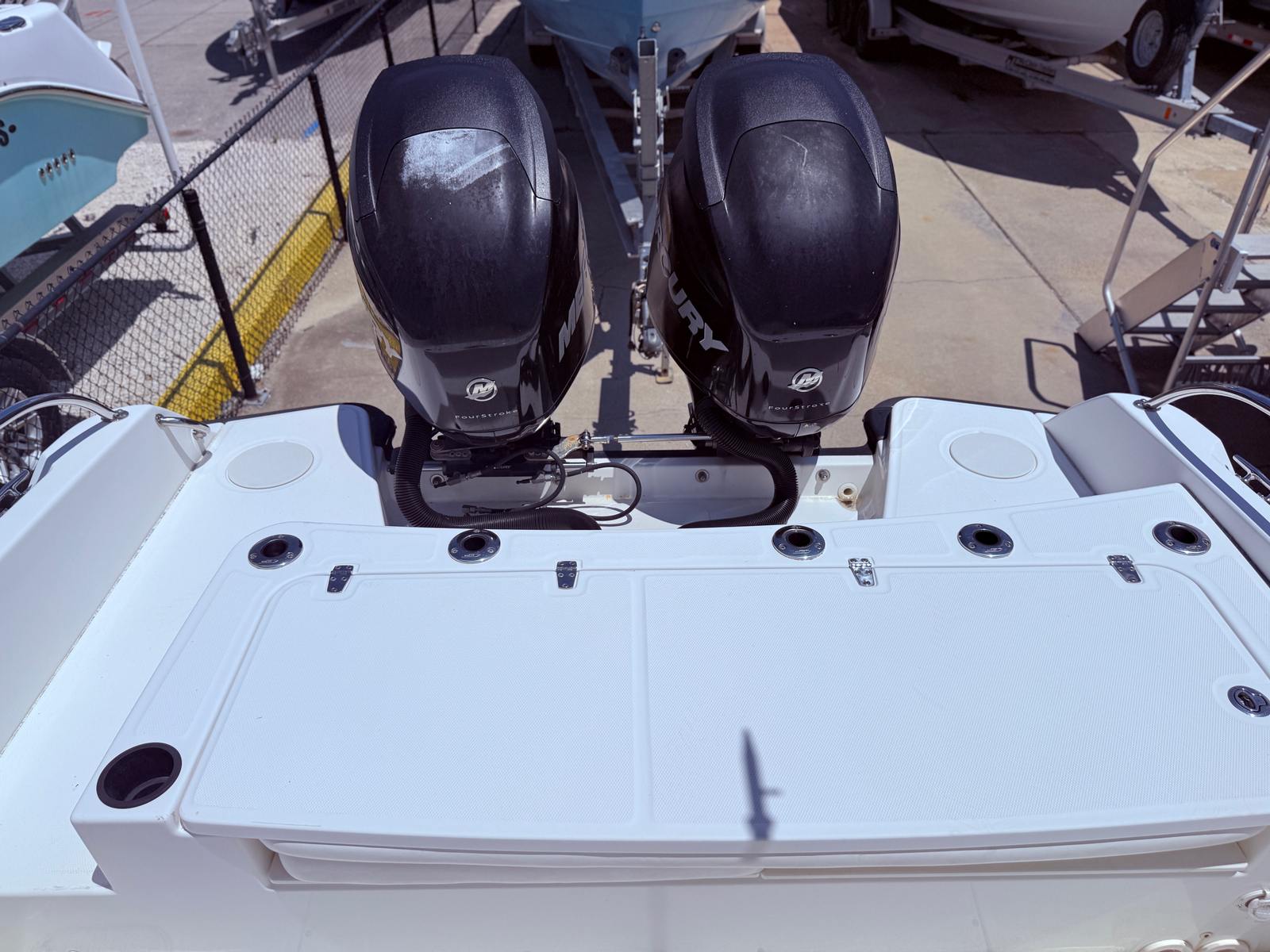 Powering the 2014 Boston Whaler 27 Dauntless are two reliable engines, combining for a total of 400 horsepower. This dual-engine setup ensures robust acceleration, smooth handling, and the confidence to tackle a wide range of boating activities. The twin engines provide enhanced maneuverability, making docking and navigating tight spaces a breeze. With 400 horsepower at your command, you’ll enjoy thrilling speeds and responsive performance whether you’re cruising, fishing, or simply enjoying a leisurely ride. The Boston Whaler 27 Dauntless is engineered for efficiency and reliability, giving you peace of mind every time you hit the water.