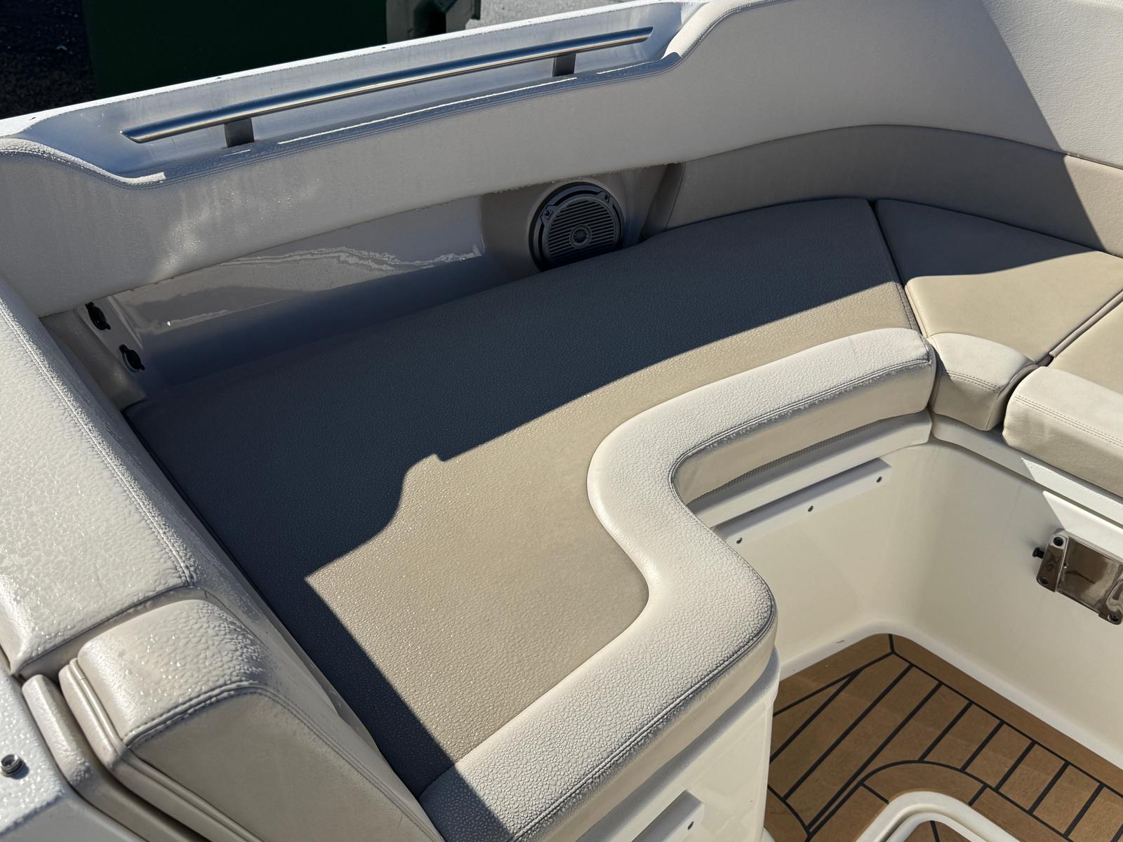 Upgrades include a 12V cockpit refrigerator, Mercury JPO Joystick control, aft cockpit sunshade and custom canvas covers for everything. All cushions look like new and the boat shows well. Come check it out at our main showroom in Grasonville or give us a call today for more details.