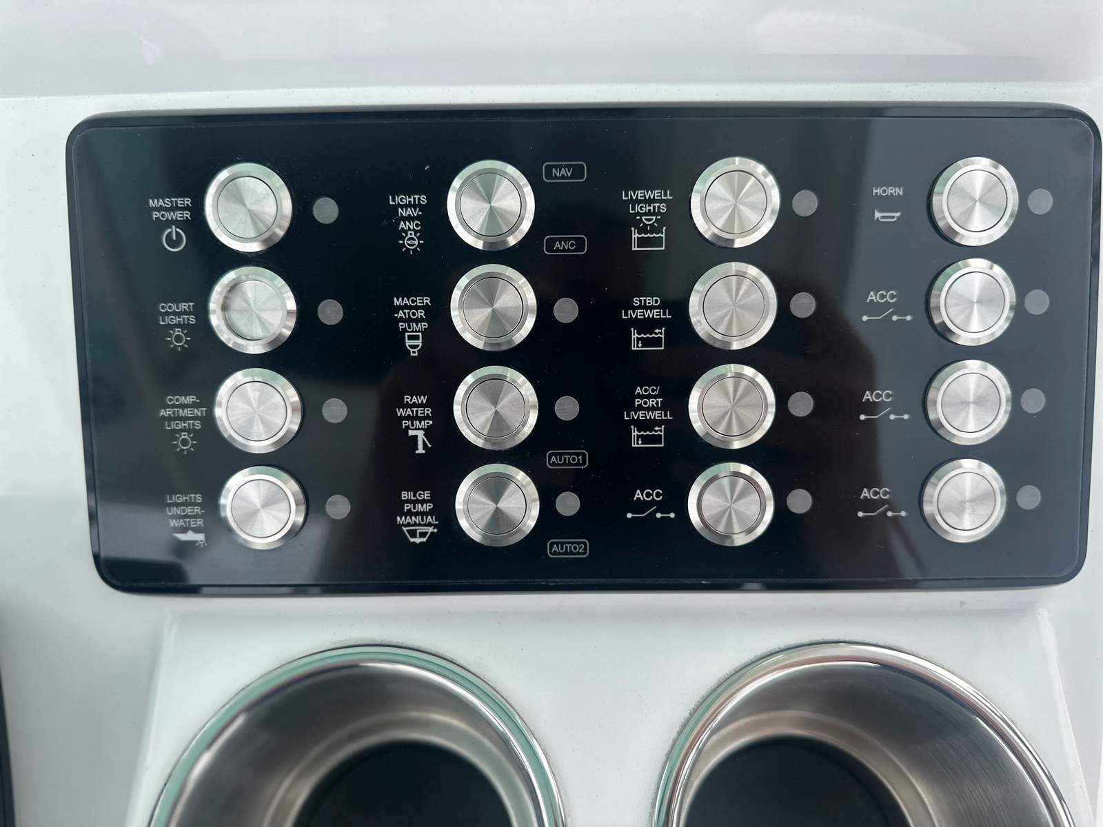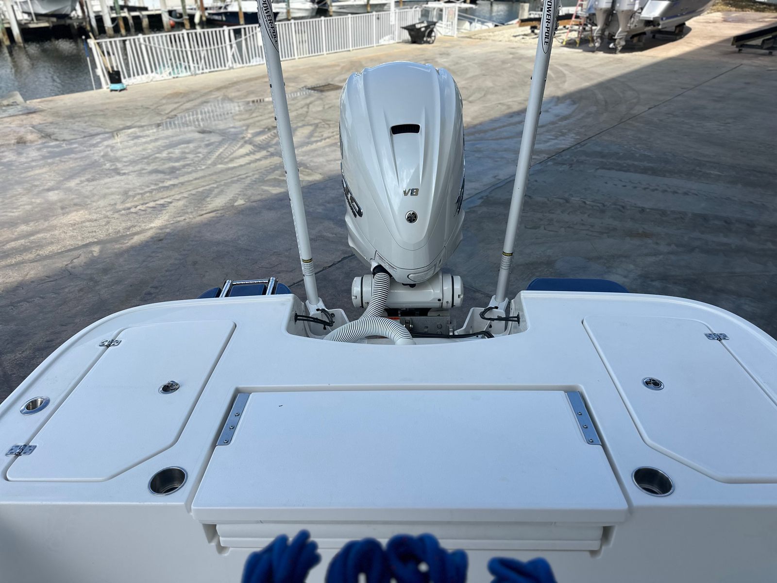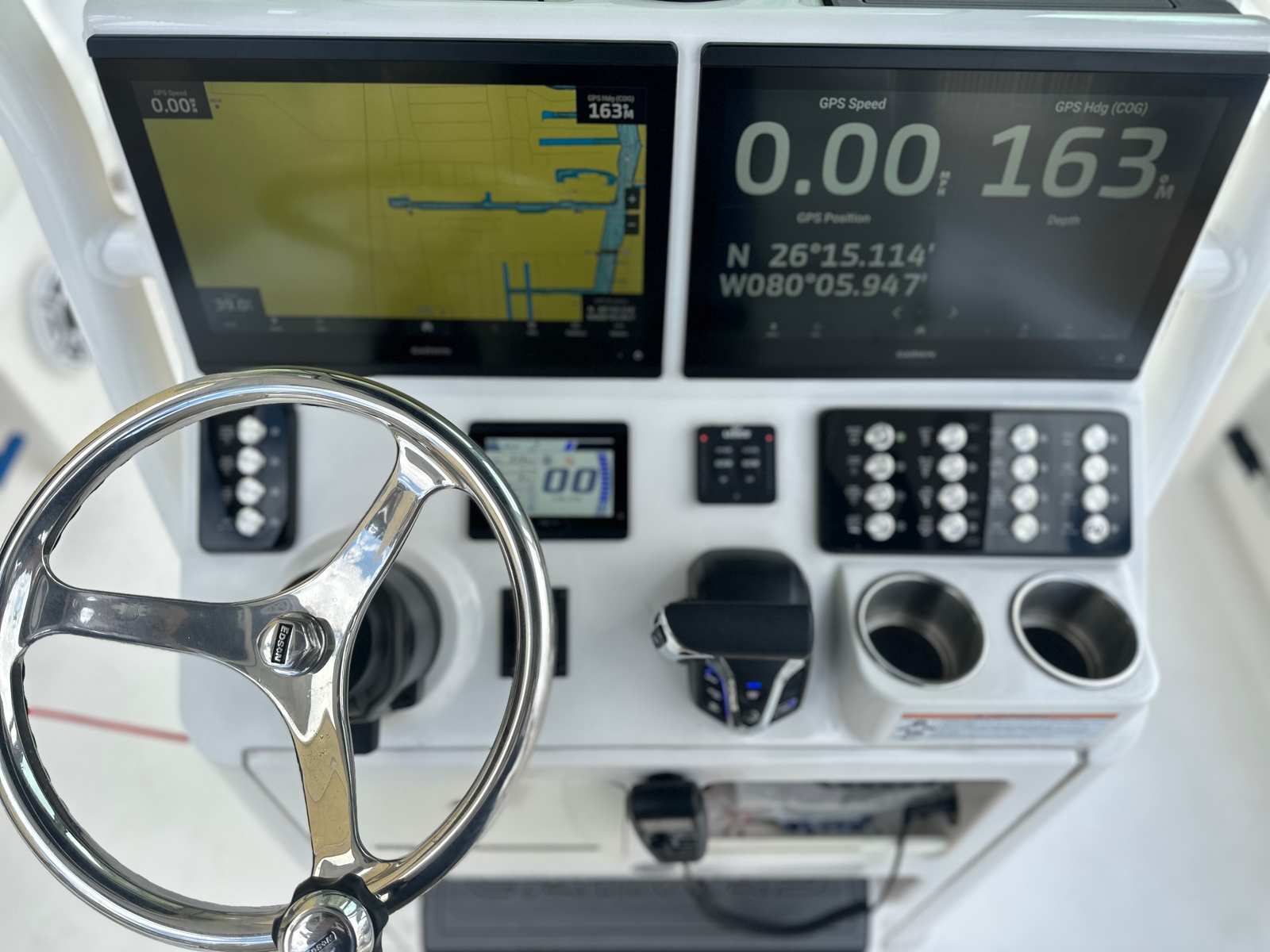 Designed as a true hybrid, the 28 HB offers forward wraparound seating, spacious helm layout, large fish boxes, ample rod storage, and a generous live well system. The console houses a head compartment, making it equally comfortable for fishing or family cruising.