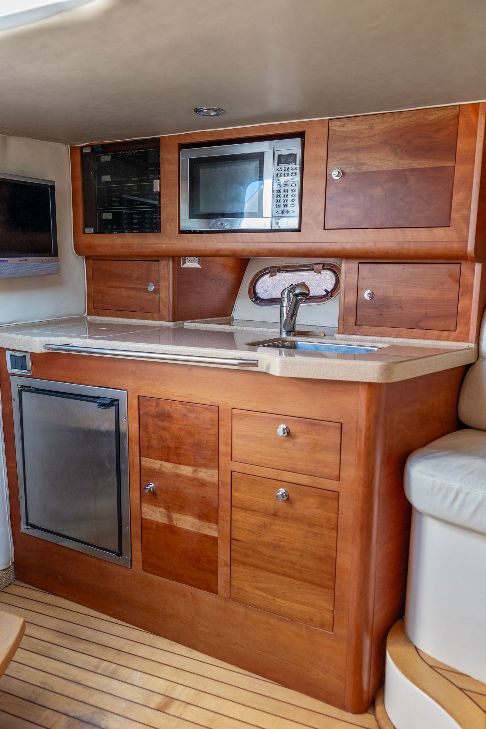 The Chris-Craft Corsair 28 is designed with practicality in mind, making ownership easy and enjoyable. The ample storage space allows you to bring along all the gear you need for a day on the water, from water sports equipment to picnic supplies. The boat’s length and layout make docking straightforward, while the twin engines provide excellent maneuverability in tight spaces. Fuel efficiency is another advantage, allowing you to spend more time enjoying the water and less time at the pump. Whether you are planning a quick afternoon escape or a full day of adventure, this bowrider is equipped to handle it all with ease.