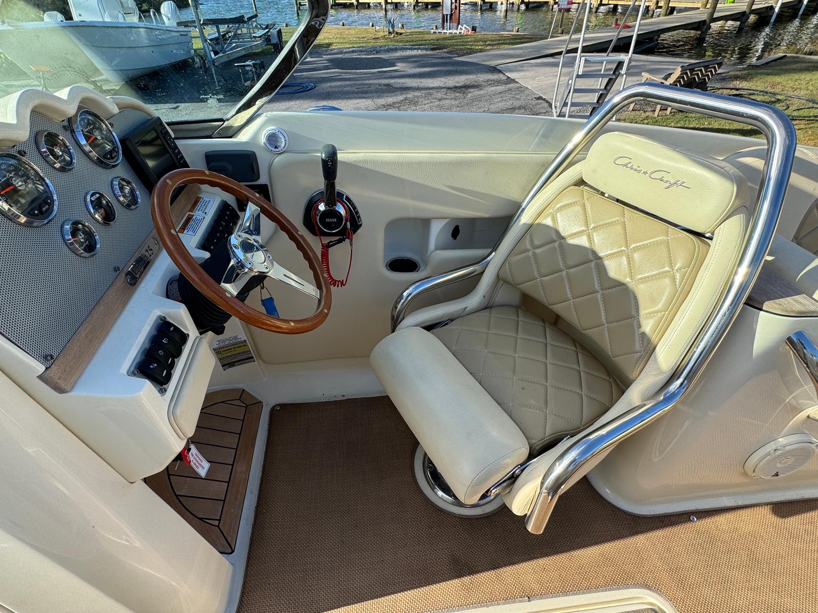 The versatility of the Chris-Craft 25 Launch makes it an excellent choice for a wide range of activities. It is perfect for family outings, offering a safe and comfortable environment for children and adults alike. The spacious bow and cockpit areas are ideal for socializing, making this bowrider a great platform for hosting friends or celebrating special occasions. For those who love water sports, the powerful engine provides plenty of thrust for tubing, wakeboarding, or skiing. The boat’s elegant design and luxurious touches also make it a standout choice for romantic sunset cruises or leisurely days exploring new waterways. Whether you are seeking adventure, relaxation, or a bit of both, the 25 Launch adapts effortlessly to your needs.
