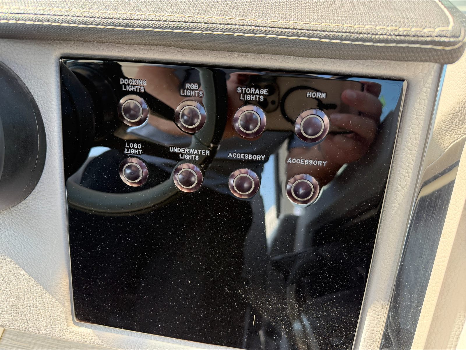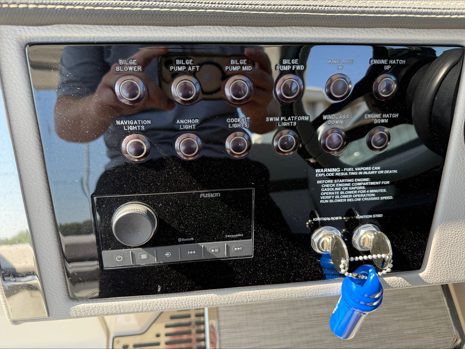 Under the hood, the Cobalt R33 boasts twin engines, delivering a combined 760 horsepower. This powerful setup ensures exhilarating acceleration, smooth cruising, and responsive handling, whether you’re navigating coastal waters or exploring inland lakes. The dual-engine configuration not only enhances performance but also provides added reliability and control, making every journey both thrilling and secure. With only 91 engine hours, these engines are primed for many more seasons of enjoyment, offering peace of mind and outstanding value for those seeking a high-performance Cobalt boat for sale.