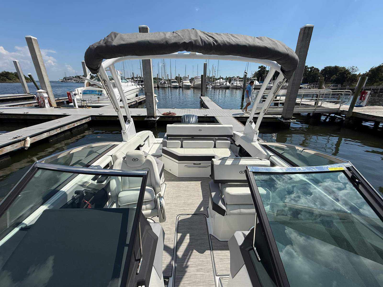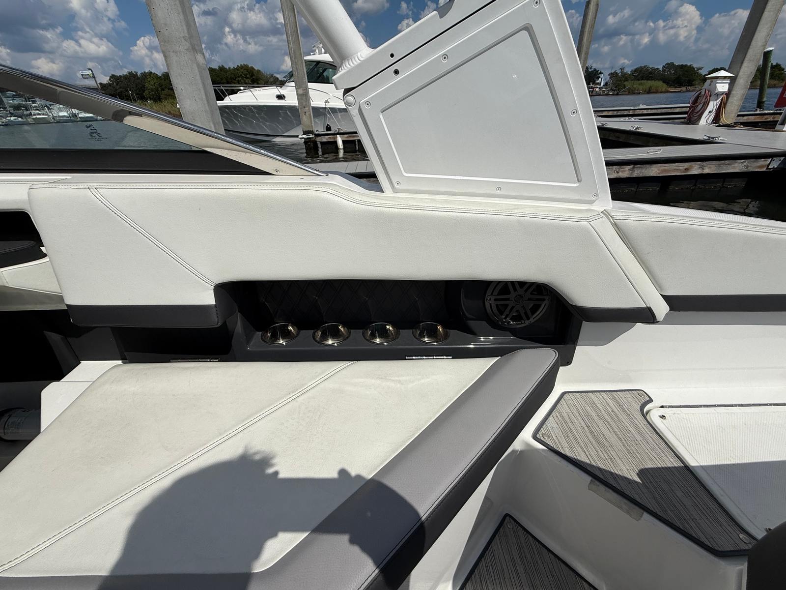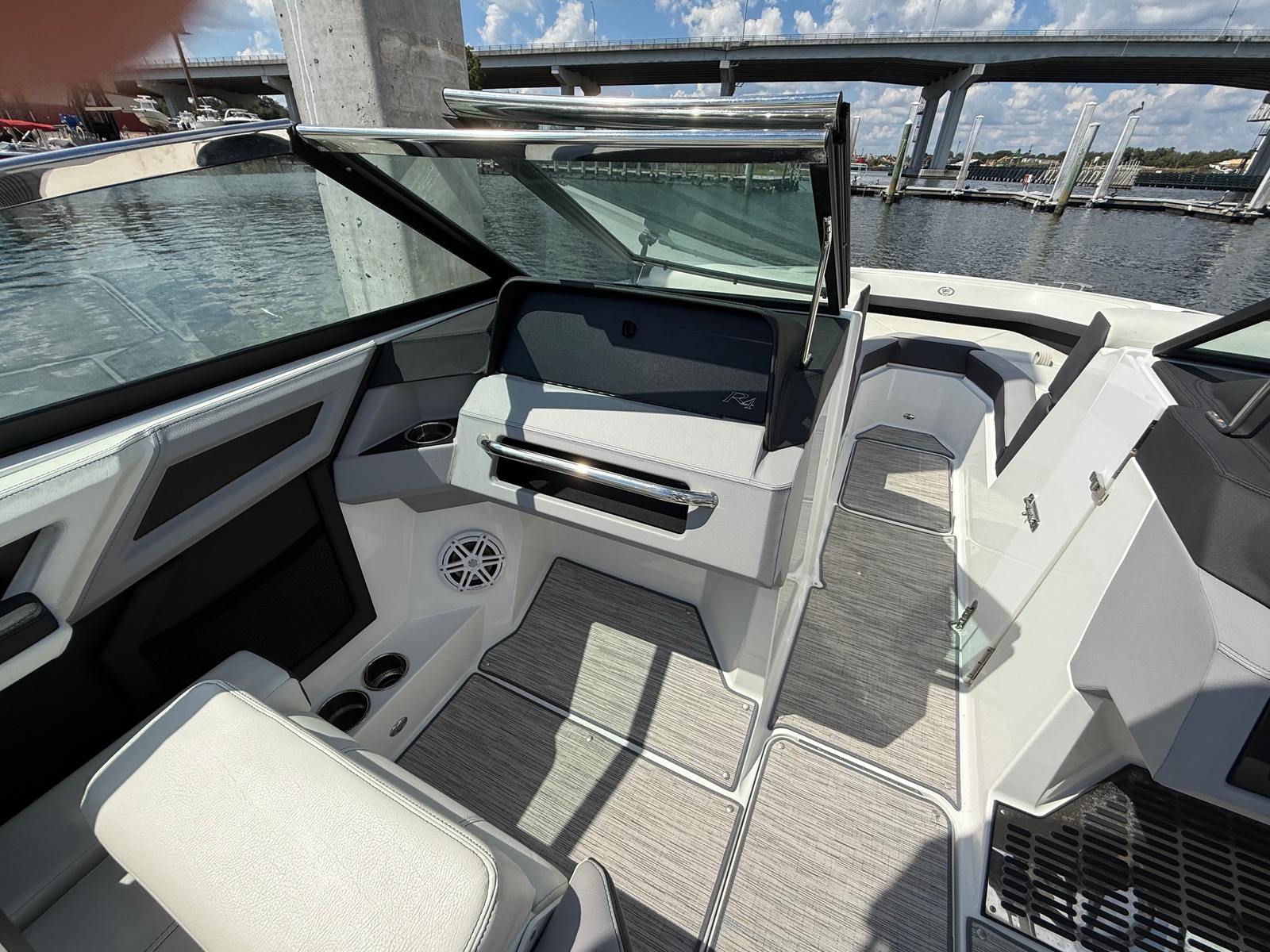 Practicality is at the heart of the Cobalt R4’s design. The boat’s ample storage options make it easy to stow life jackets, water sports equipment, and personal items, keeping the deck clutter-free and safe. The intuitive helm layout and responsive controls simplify docking and maneuvering, even in tight spaces, making this bowrider an excellent choice for both experienced captains and newcomers alike.Fuel efficiency is another key benefit of the R4’s design. The combination of a single, powerful engine and a well-engineered hull means you can enjoy longer days on the water without frequent refueling stops. This efficiency not only saves money but also allows you to explore farther and make the most of every adventure.