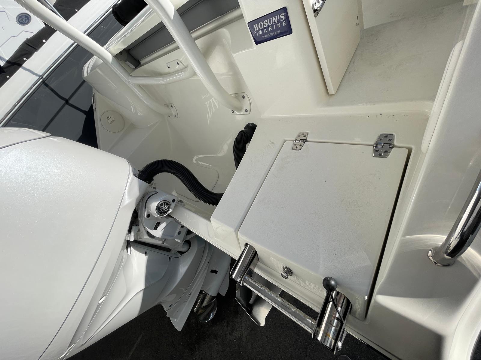 The Cobia 220 DC is designed with practicality in mind, making ownership both easy and enjoyable. The Dual Console layout provides flexible storage options for gear, snacks, and personal items, keeping the deck organized and clutter-free. Docking is simplified thanks to the advanced steering system and trim tabs, allowing for smooth approaches and departures. The efficient Yamaha engine ensures you get the most out of every gallon of fuel, making this boat an economical choice for frequent outings.The Head with Pump-Out and Deck Fitting is a valuable feature for families and groups, offering convenience during extended trips. The Bimini Top can be quickly deployed or stowed, adapting to changing weather conditions and personal preferences. With the JL Audio stereo system, you can set the perfect mood for any occasion, whether it’s a lively party or a relaxing afternoon on the water.