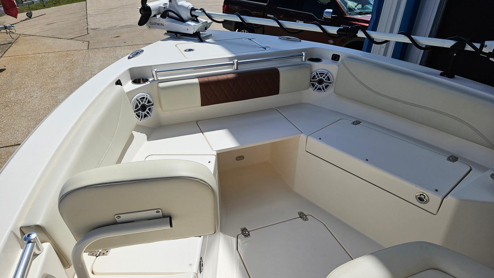 Powered by a single 150-horsepower engine with only 129 hours, the 2022 Cobia 240 CC offers a smooth and responsive ride. The engine’s impressive horsepower ensures that you have the power to navigate a variety of water conditions, from calm lakes to coastal waters. With its efficient design, this center console boat for sale provides excellent fuel economy, allowing you to spend more time on the water and less time at the fuel dock. The engine’s low hours reflect careful use and promise many more seasons of dependable performance. Whether you are chasing the next big catch or cruising to your favorite waterfront destination, the Cobia 240 CC delivers the performance you expect from a leading center console brand.