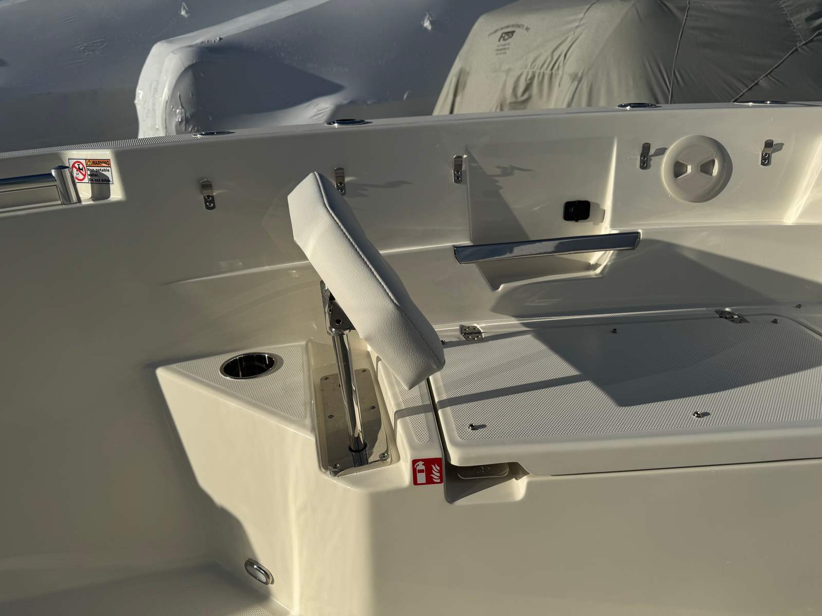 At the heart of the Cobia 245 CC’s exhilarating performance are twin Yamaha 150XSA2 engines, finished in a striking white. Together, these engines deliver a combined 300 horsepower, providing the thrust and agility needed for a wide range of activities, from high-speed runs to leisurely cruises. The inclusion of the Helm Master EX DES twin engine system with ISO charger ensures precise control and seamless maneuverability, making docking and navigation effortless. Digital electric steering offers a smooth, responsive feel at the helm, while the upgraded Edson steering wheel with a stainless power knob adds a touch of luxury and ergonomic comfort. Whether you are chasing the horizon or navigating tight marinas, the Cobia 245 CC’s performance package is designed to inspire confidence and excitement.