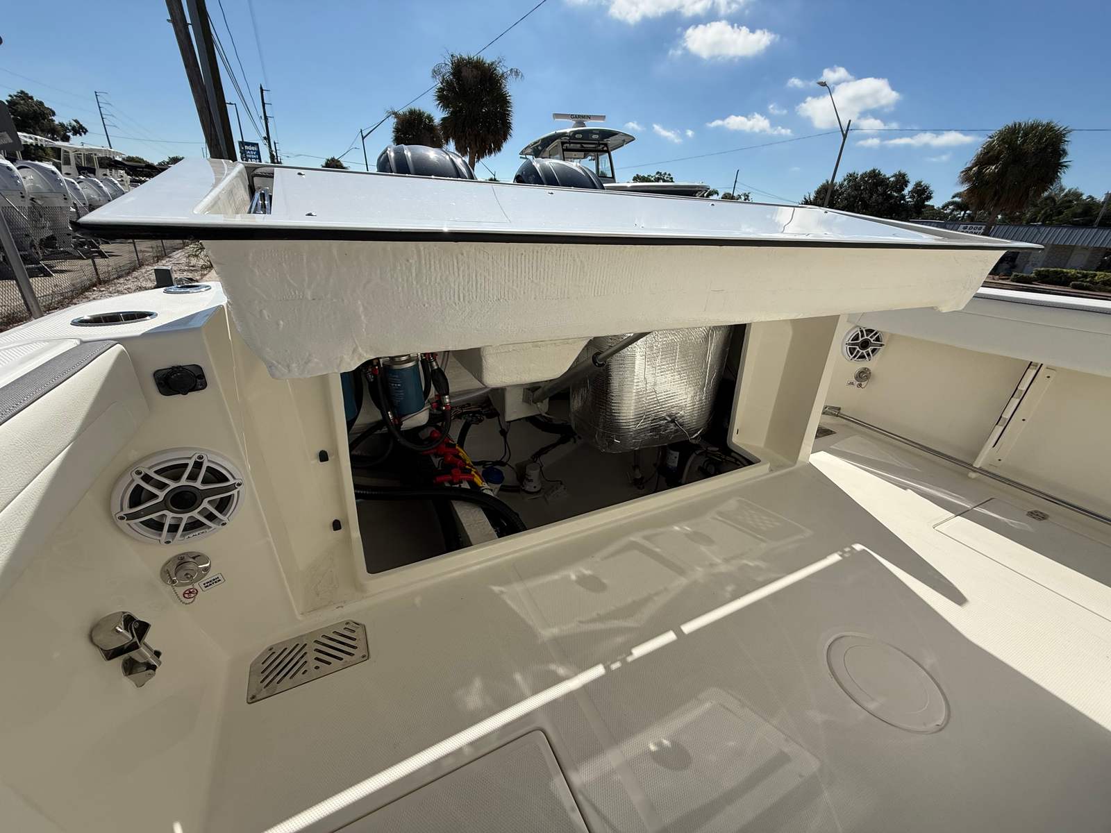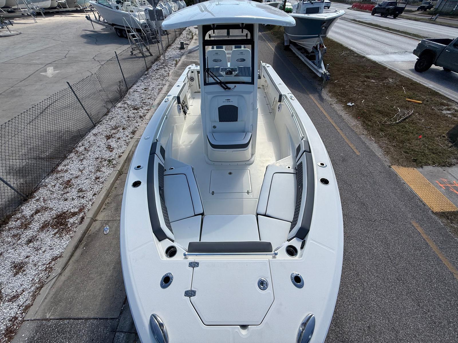The 2026 Cobia 265 CC is loaded with premium features designed to maximize comfort, convenience, and enjoyment on the water. The hardtop with integrated frame and glass windshield offers superior protection from the elements while maintaining clear visibility and a sleek profile. White powder coating throughout the boat adds a touch of elegance and durability, ensuring your investment remains beautiful for years to come.At the helm, you will find a premium seat with a tackle center and a cooler with a convenient slide, making it easy to access refreshments and gear without missing a moment of the action. The cushion package features a sophisticated two-tone platinum and white design, providing both comfort and style for you and your guests. The bow cushion package invites relaxation at the front of the boat, perfect for sunbathing or enjoying the breeze.The faux teak decking kit in grey and black not only enhances the aesthetic appeal but also offers a non-slip surface for added safety. GEM stainless steel accents throughout the boat add a touch of luxury and ensure long-lasting performance in marine environments.