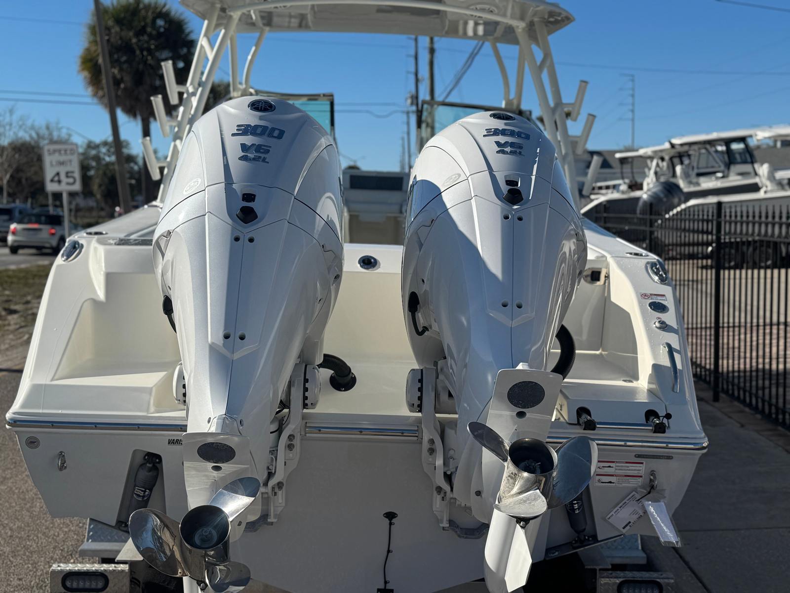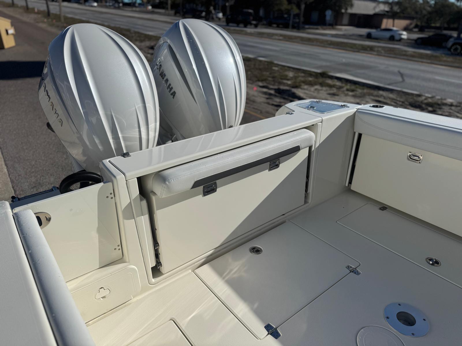 Powering the Cobia 280 DC are twin Yamaha F300XSB2 engines, finished in a striking white. Together, these engines deliver a robust 600 horsepower, providing exhilarating acceleration and smooth cruising capabilities. The digital electric steering system ensures precise handling and effortless maneuverability, whether you’re navigating tight marinas or open waters. With this level of power and control, the Cobia 280 DC is engineered to perform at the highest level, making every outing memorable and enjoyable.