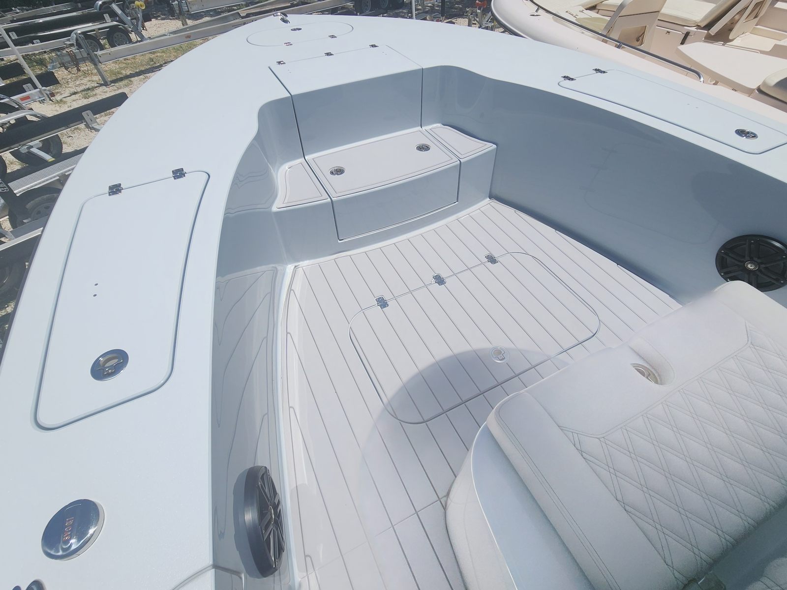 At the heart of the Conch 25 Bay is a powerful single engine delivering an impressive 400 horsepower. With just 5 hours on the engine, you can expect peak performance and reliability for countless adventures ahead. The robust engine ensures swift acceleration, smooth cruising, and the ability to tackle various water conditions with confidence. Whether you are chasing the next big catch or enjoying a leisurely cruise, the Conch 25 Bay’s performance capabilities set it apart from other Center Console boats for sale.