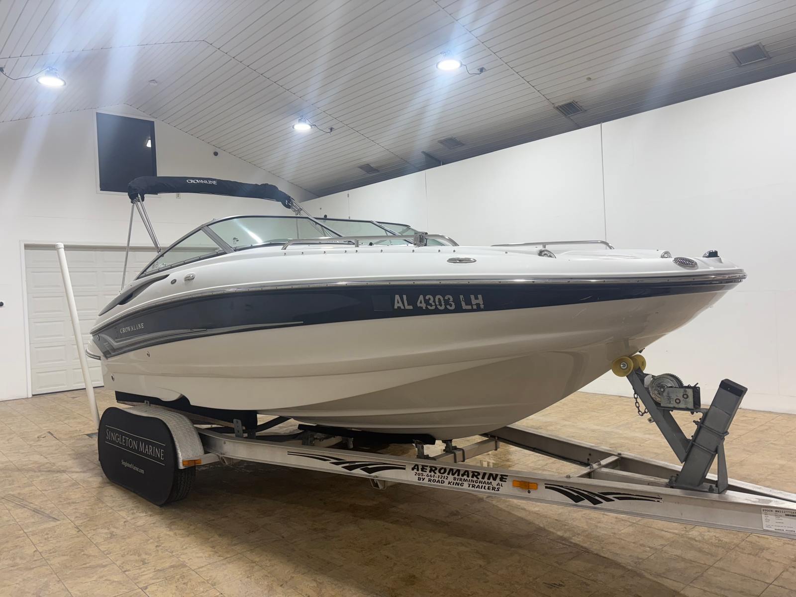 The Crownline 220 EX is packed with features that enhance comfort, convenience, and enjoyment on the water. Its 22-foot length provides ample space for family and friends, while the Bowrider layout ensures everyone has a comfortable spot to relax and take in the views. The open bow seating area is perfect for sunbathing, socializing, or simply enjoying the breeze as you glide across the water. The cockpit is thoughtfully designed with ergonomic seating and easy access to controls, making it simple to operate and navigate.This used Crownline boat for sale is built with quality materials and craftsmanship, ensuring durability and longevity. The hull design offers stability and a smooth ride, even in choppier conditions. Storage compartments are strategically placed throughout the boat, providing plenty of room for gear, water toys, and personal items. The swim platform at the stern makes it easy to get in and out of the water, adding to the fun and convenience of every trip.