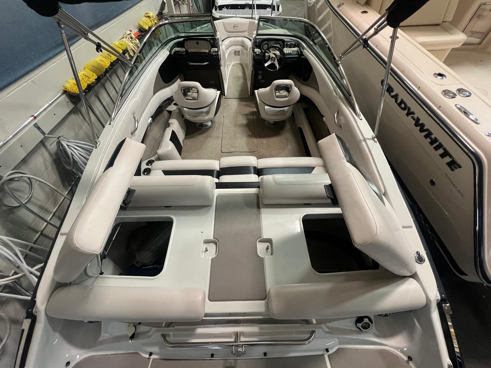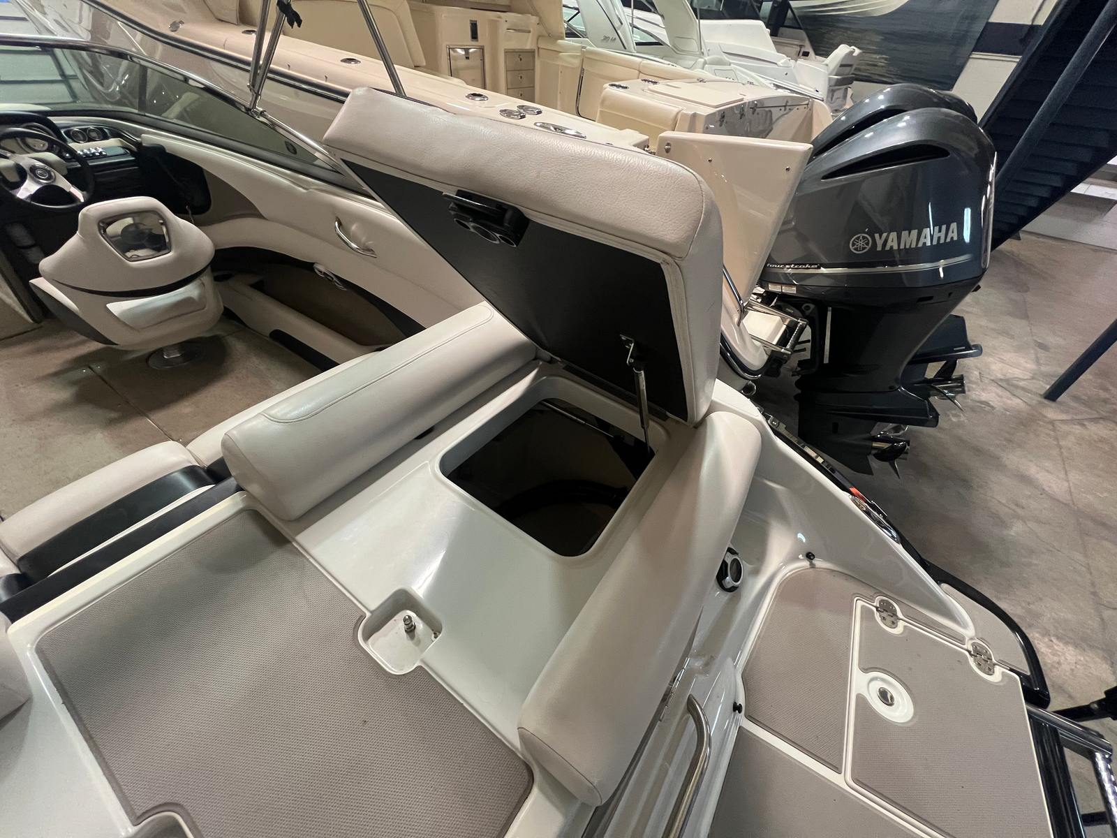 This Bowrider is as practical as it is stylish. The snap-in cockpit carpet makes cleaning up after a day of swimming or fishing a breeze, while the dual battery setup ensures you have plenty of power for lights, music, and other electronics. The dedicated bow and cockpit covers help protect your investment from the elements, reducing maintenance and keeping your boat looking its best. At 23 feet, the Crownline 235 SS is easy to dock, maneuver, and store, making it a great choice for both experienced boaters and those new to the water. Its efficient design means you can enjoy longer outings without worrying about fuel consumption, maximizing your time on the water.