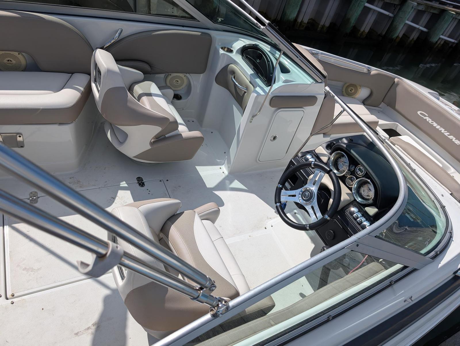 The Crownline E1 XS is designed with the modern boater in mind, offering a host of features that enhance your time on the water. The spacious bow seating area provides a comfortable spot for sunbathing, socializing, or simply taking in the views. The ergonomic helm station puts you in command, with intuitive controls and clear sightlines for safe navigation. The 21-foot length allows for generous deck space, making it easy to move around and enjoy every corner of the boat.Special features of the Crownline E1 XS include a well-appointed cockpit, stylish upholstery, and smart storage solutions that keep your gear organized and out of the way. The boat’s layout encourages relaxation and fun, with plenty of room for coolers, water sports equipment, and personal items. The durable construction and quality materials ensure that this used Crownline boat for sale will continue to deliver enjoyment for years to come.