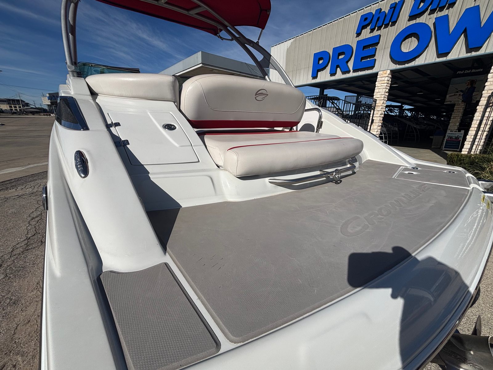 The Crownline E2 Bowrider shines in a variety of scenarios, making it a versatile addition to any boating lifestyle. For families, it’s the perfect platform for weekend outings, swimming, and picnics on the water. The spacious seating and open deck make it easy to accommodate guests, ensuring everyone has a comfortable spot to relax and enjoy the ride.For those who love water sports, the E2’s powerful engine provides the speed and agility needed for tubing, wakeboarding, and more. Its responsive handling makes it easy to navigate tight turns and open waters alike, delivering thrills for adventure seekers. If you prefer leisurely cruises, the Crownline E2 offers a smooth, quiet ride that’s perfect for exploring scenic lakes, rivers, and coastal areas.Whether you’re hosting a sunset cocktail party, embarking on a fishing trip, or simply enjoying a peaceful day on the water, this Bowrider boat for sale adapts to your needs and enhances every experience. Its blend of style, performance, and comfort makes it a standout choice for anyone seeking a Crownline boat for sale that delivers on every front.