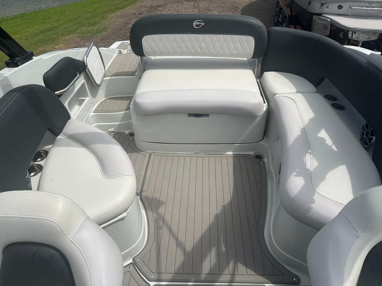 Owning the Crownline E255 Surf means unlocking a world of fun and excitement. The Bowrider design is perfect for socializing, with ample seating that encourages conversation and connection. Whether you’re hosting a sunset cruise or a lively day of water sports, this boat creates the perfect atmosphere for making memories. The powerful engine and surf-ready features cater to thrill-seekers, while the comfortable seating and spacious deck invite relaxation.The E255 Surf’s versatility is one of its greatest strengths. It’s equally at home towing wake surfers as it is providing a smooth, quiet ride for sightseeing or fishing. The open layout makes it easy to move around, and the thoughtful design ensures everyone on board can enjoy their favorite activities. With its combination of performance, comfort, and style, this Crownline boat for sale is a fantastic investment for anyone who loves spending time on the water.