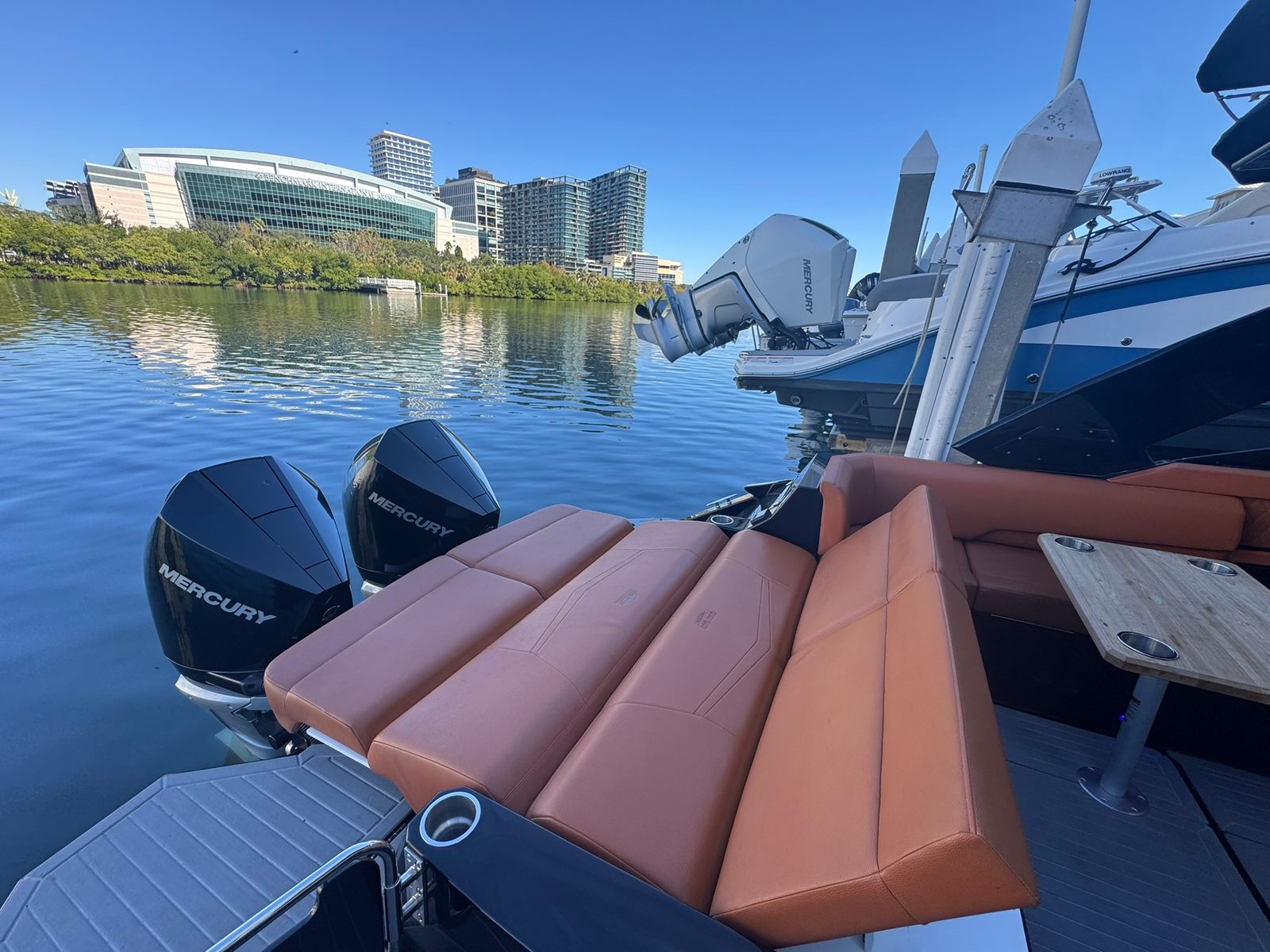 Powered by twin Mercury 300 V8s with Joystick Piloting (JPO), the 338 delivers effortless handling, smooth performance, and premium reliability. Both the engines and boat received full service in October 2025, giving you complete peace of mind from day one.