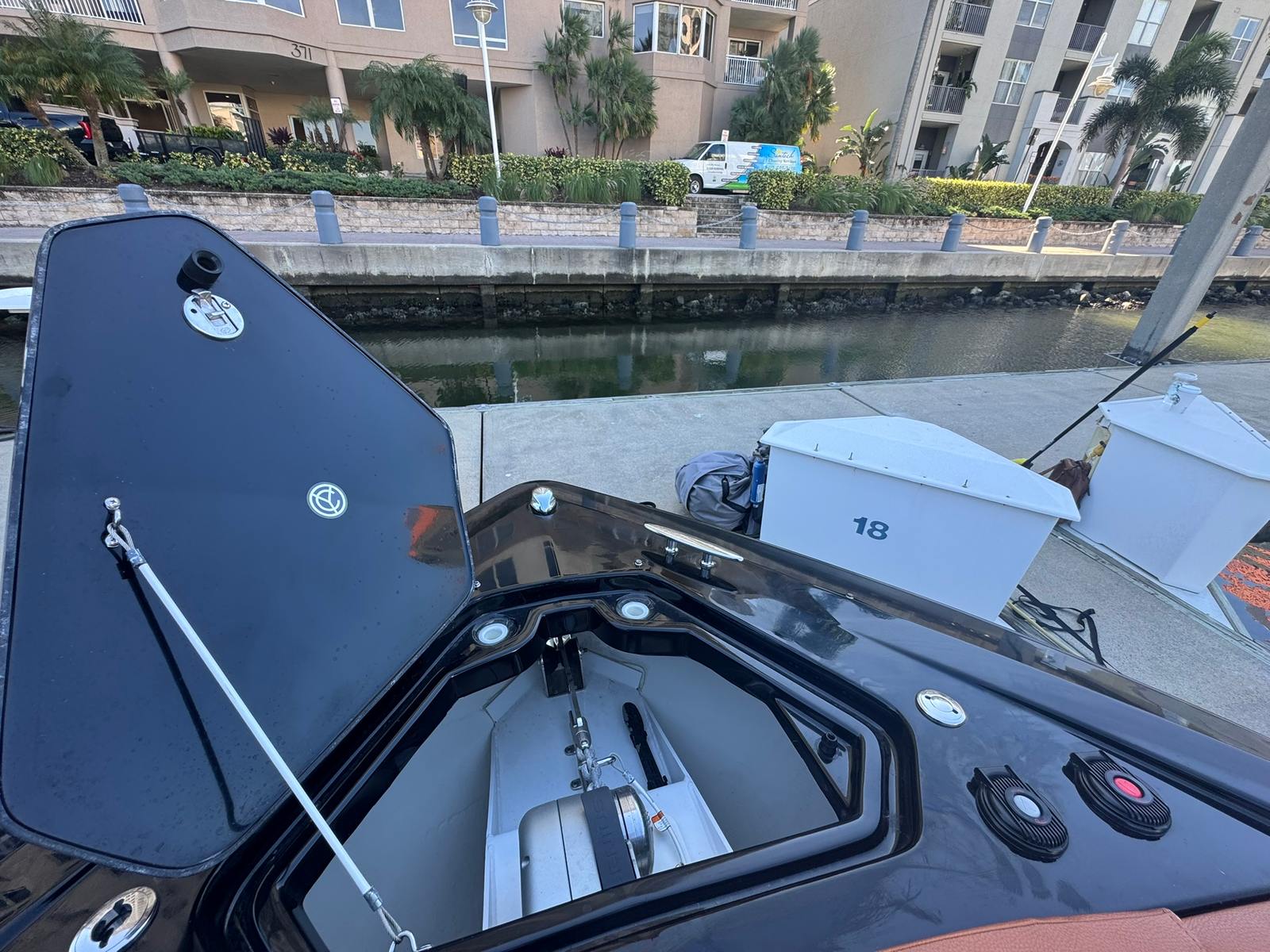 Inside, the boat features full SeaDek flooring and a beautifully finished cabin enhanced with a Lithium power bank that runs the cabin A/C system, making overnights and hot Florida days a breeze—even away from shore power.