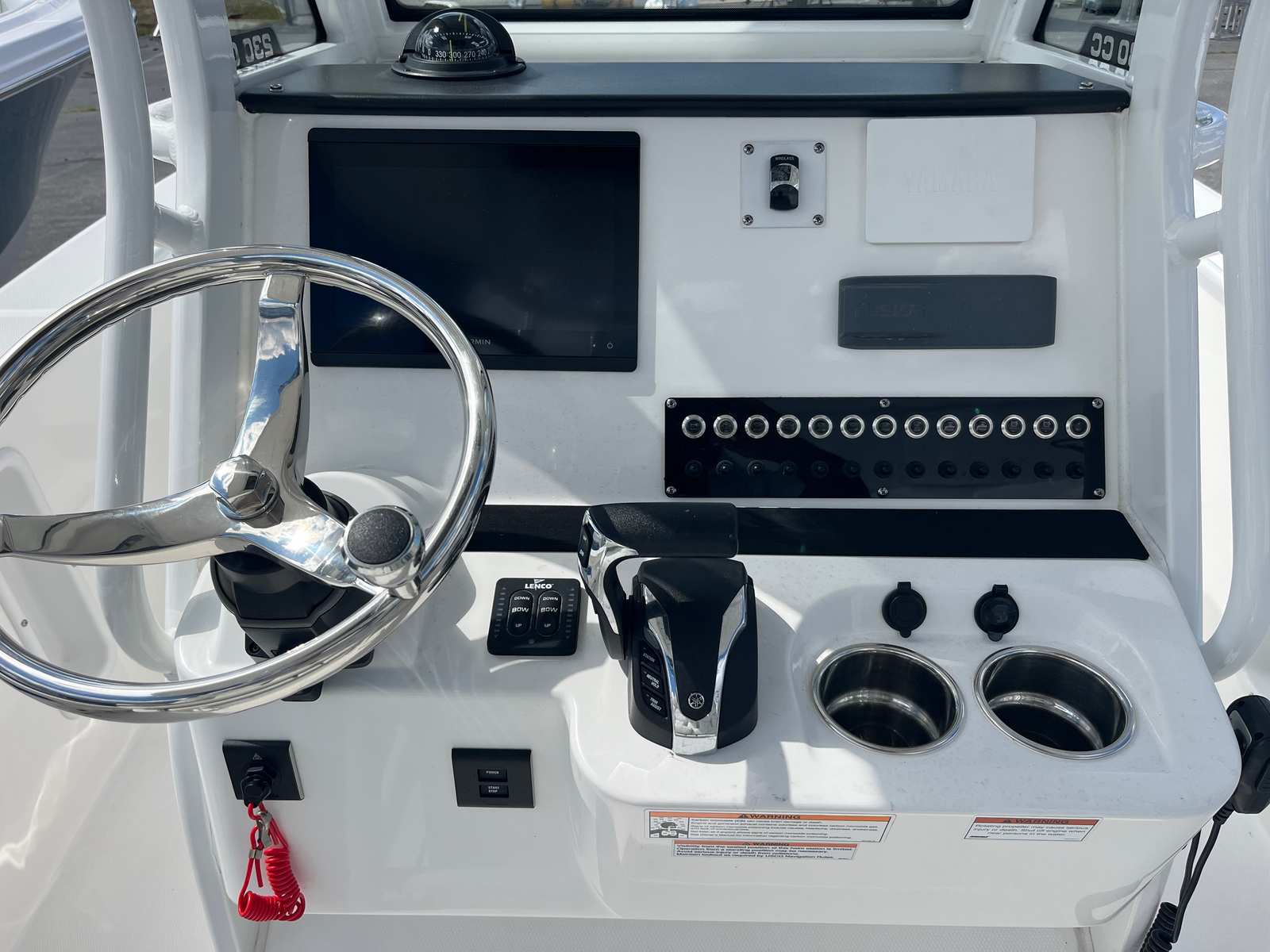The 2023 Edgewater 230 CC is a used center console boat that measures an impressive 24.5 feet in length, offering ample space for passengers and gear. With its sleek lines and modern design, this boat is as visually striking as it is functional. The Edgewater 230 CC is renowned for its durability and stability, providing a safe and comfortable ride in a variety of water conditions. With only 17 engine hours, this boat is in excellent condition, offering the benefits of a nearly new vessel at a used boat price. Its thoughtful layout and high-quality construction make it a standout option for anyone searching for a center console boat for sale.