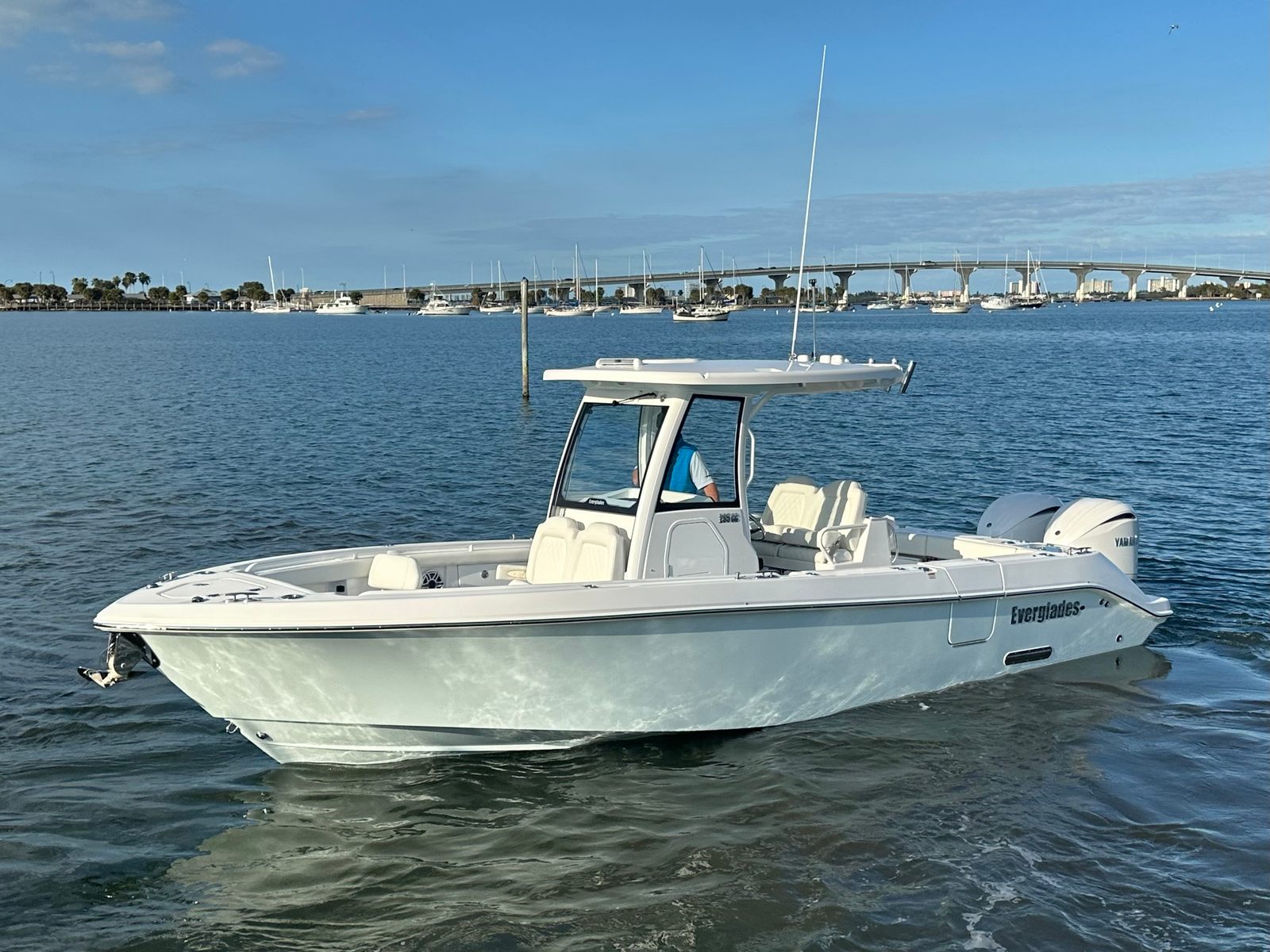 The Everglades 285 CC is designed with versatility in mind, making it an ideal choice for a variety of on-water pursuits. Its ample storage options allow you to bring along everything you need for a day of fishing, water sports, or leisurely cruising. The ease of docking, thanks to the joystick control and autopilot system, means you can confidently navigate tight marinas or busy docks with precision.Fuel efficiency is enhanced by the boat’s modern hull design and advanced engine technology, allowing you to spend more time on the water and less time at the fuel dock. The robust construction and high-quality materials ensure durability and low maintenance, giving you peace of mind and more opportunities to enjoy your investment.
