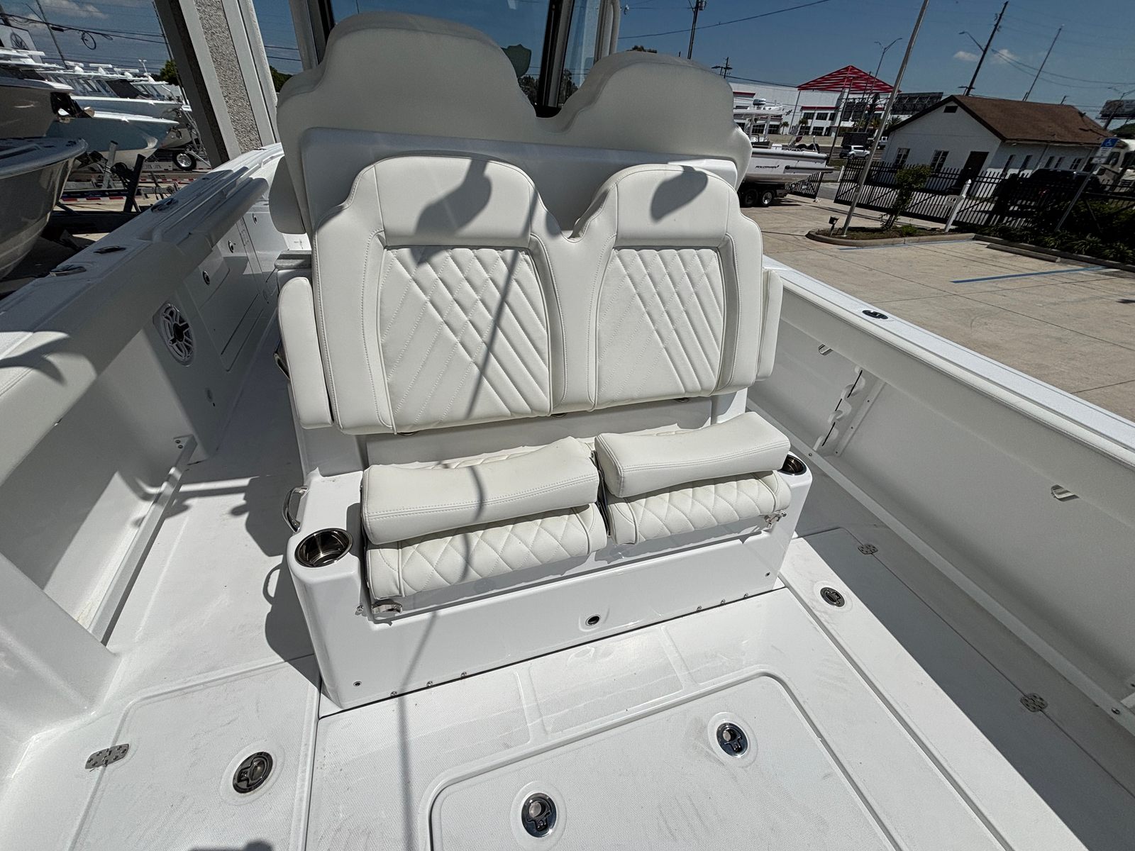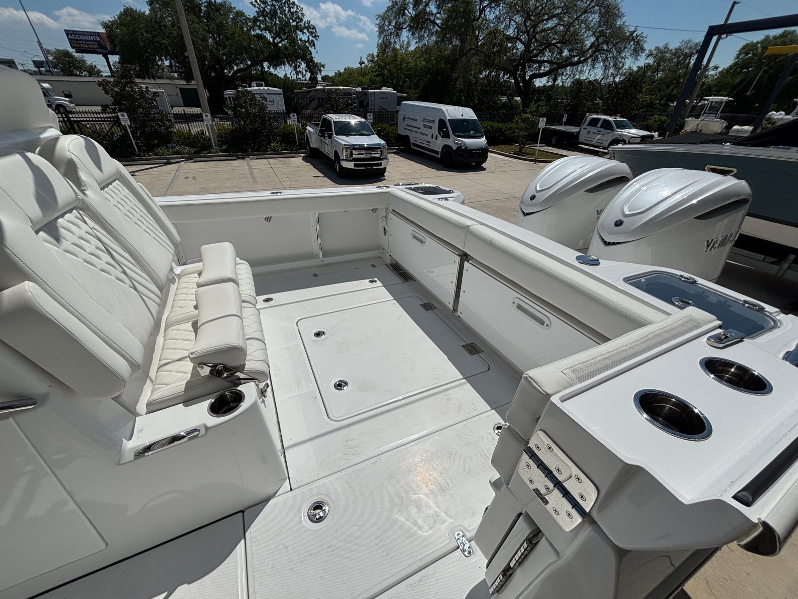 This Everglades 315 CC is loaded with premium features designed to enhance every aspect of your time on the water. The full white gel hull color not only looks stunning but also offers durability and low maintenance. The solid white upholstery provides a clean, modern look and exceptional comfort for all passengers. The comprehensive canvas package includes a console cover, forward console seat cover, helm seat cover, and bow seating accent cover, all in a stylish silver hue, ensuring your boat stays protected and looking its best.For anglers and adventurers, the trolling motor pre-rig offers the flexibility to customize your fishing setup, while the engine flushing system makes maintenance a breeze, keeping your twin Yamaha F350 engines in peak condition. The premium audio package transforms your outings with crystal-clear sound, perfect for setting the mood whether you are entertaining guests or relaxing at anchor. The Seakeeper Ride 600 Trim Tab System, which replaces the traditional Zipwake trim tab system, provides superior stability and ride comfort, ensuring smooth sailing in a variety of sea conditions.
