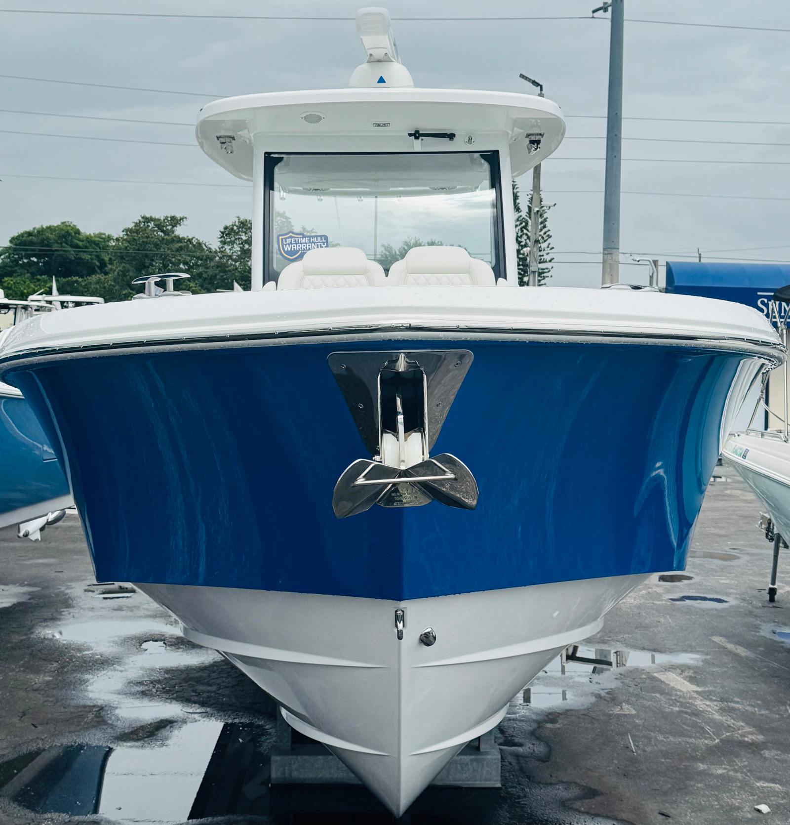 The 2025 Everglades 315 CC stands out as a premier center console boat for sale, measuring an impressive 33.75 feet in length. Its sleek profile and contemporary design are complemented by a striking Major Blue gel hull color, ensuring you turn heads at every marina and on every cruise. The solid white canvas and upholstery create a clean, modern aesthetic, while the boat’s new condition guarantees you’ll be the first to enjoy its state-of-the-art features and craftsmanship. The Everglades 315 CC is built for both serious anglers and those who appreciate luxury and comfort, offering ample space for entertaining, fishing, and relaxing.