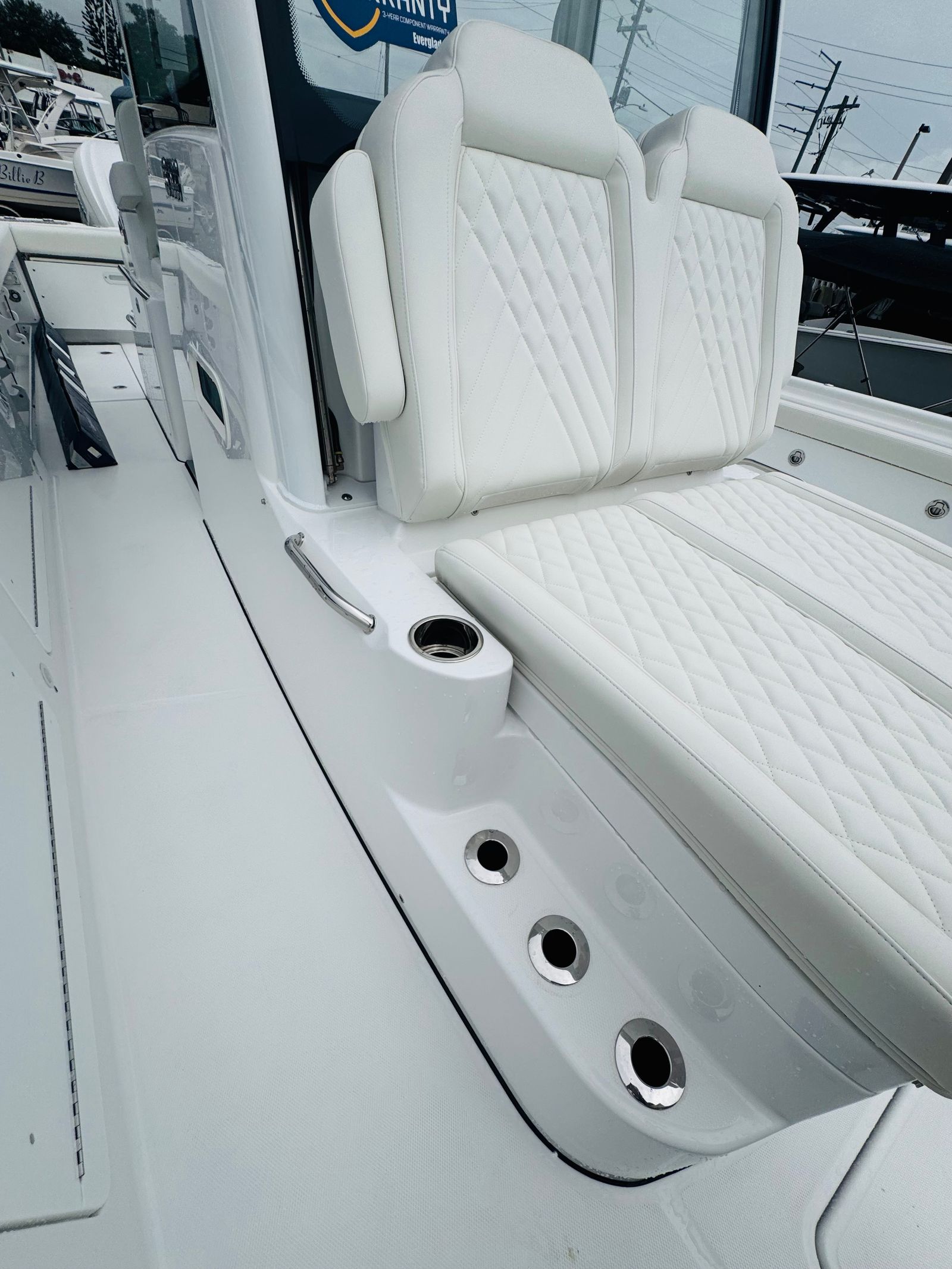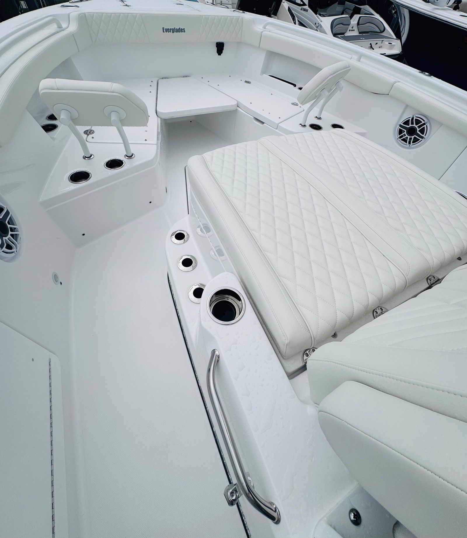 Owning the Everglades 315 CC means unlocking a world of fun, excitement, and relaxation. The spacious center console layout provides ample room for friends and family to spread out, socialize, and enjoy the ride. The boat’s advanced lighting system ensures you can extend your adventures into the evening, creating magical moments under the stars. The fishing package transforms every outing into an opportunity for thrilling catches and shared stories, while the elite features ensure you’re always comfortable and well-equipped. The solid white upholstery and canvas not only look fantastic but are easy to clean and maintain, keeping your boat looking pristine season after season. With its powerful twin engines and precision steering, you’ll experience the thrill of high-speed runs and the confidence of smooth, controlled navigation.