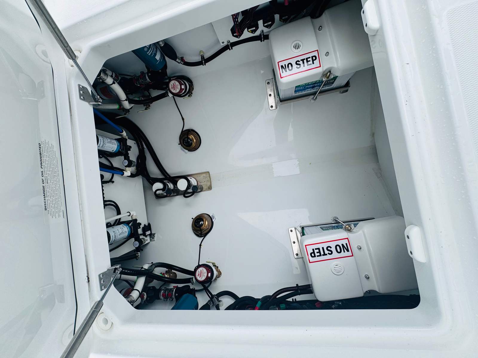 Powering the Everglades 315 CC are twin Yamaha White 350hp engines, delivering a combined 700 horsepower. This formidable setup ensures exhilarating acceleration, smooth cruising, and reliable performance in a variety of conditions. The engines feature Digital Electric Steering (DES), providing precise handling and effortless maneuverability whether you’re navigating tight harbors or open waters. With this level of power, the Everglades 315 CC is ready to tackle offshore adventures, high-speed runs, and leisurely cruises with equal confidence. The advanced engineering behind these Yamaha engines also contributes to fuel efficiency and reduced maintenance, so you can spend more time enjoying the water and less time worrying about upkeep.