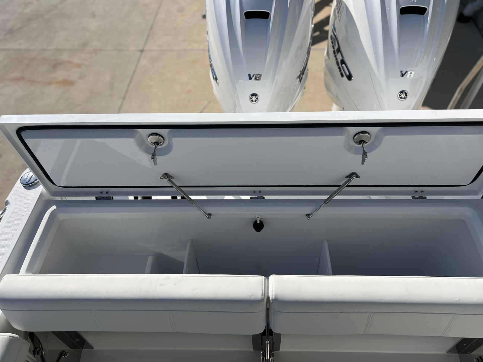 The 2025 Everglades 335 CC is loaded with premium features designed to maximize comfort, convenience, and enjoyment on the water. The Gel-White finish and Solid White upholstery create a clean, modern aesthetic that is both stylish and easy to maintain. The Canvas Package adds versatility and protection, allowing you to adapt to changing weather conditions with ease. For those who appreciate luxury, the chiller plate for the mezzanine seat ensures your refreshments stay cool, even on the hottest days.The engine flushing system simplifies maintenance, helping to extend the life of your twin Yamaha F450 engines. Structural support for the Seakeeper 2 provides the foundation for advanced stabilization, enhancing comfort during rough conditions. Underwater RGBW lights, transom-mounted, add a dramatic touch to evening cruises, creating an inviting ambiance for entertaining or relaxing after sunset. The Prime Package further elevates the boating experience, offering a suite of enhancements that cater to both avid anglers and leisure seekers alike.