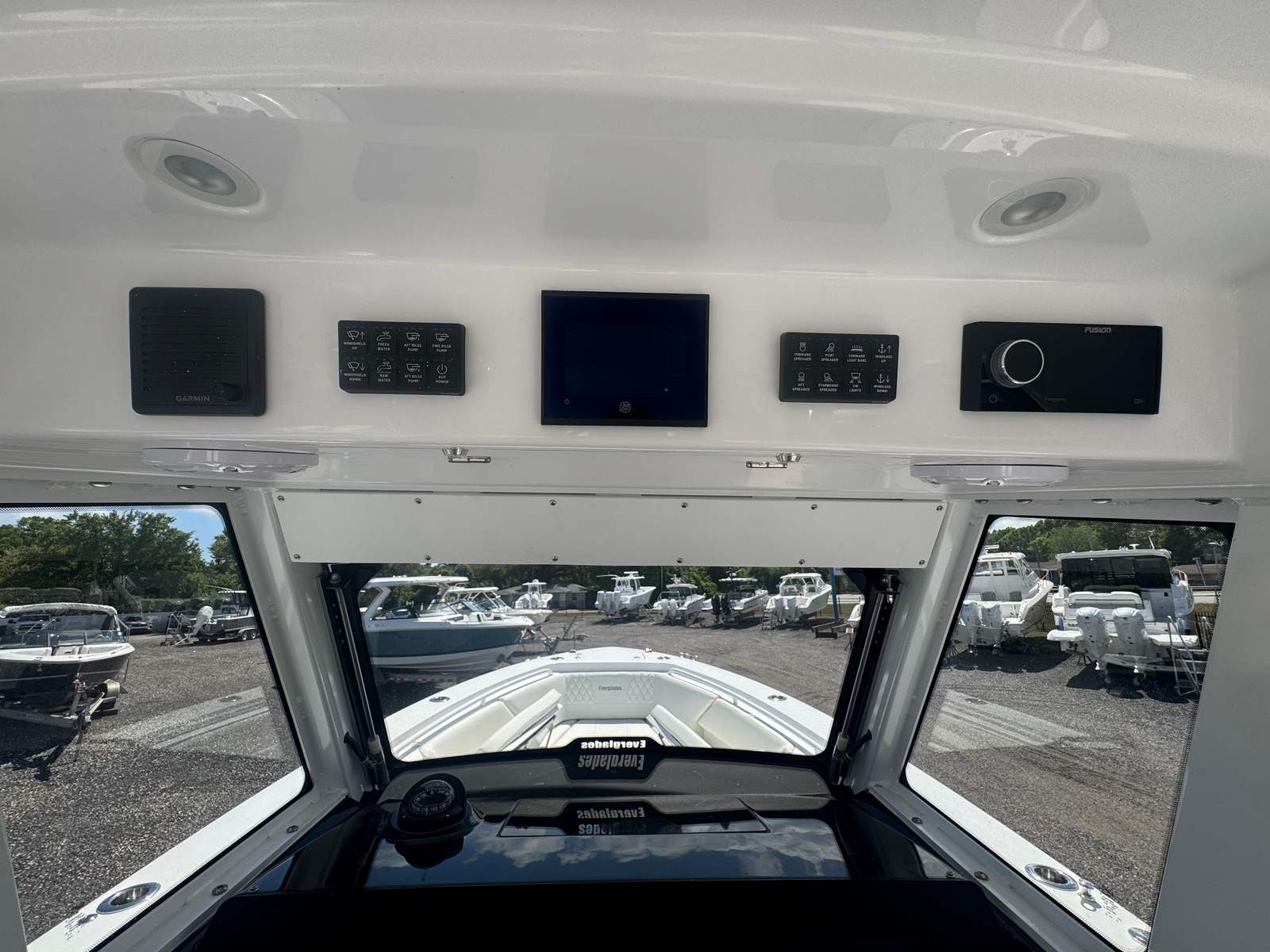 Practicality meets luxury in the Everglades 335 CC. The boat’s generous length provides ample storage for gear, supplies, and personal items, keeping the deck uncluttered and organized. The Auto Pilot and Joystick systems make docking and maneuvering effortless, even in challenging conditions, while the engine flushing system streamlines maintenance and helps preserve engine performance. The canvas covers protect key areas from the elements, reducing wear and tear and keeping your boat looking its best.Fuel efficiency is enhanced by the advanced Mercury engines, allowing you to enjoy longer journeys with fewer stops. The collapsible outriggers are easy to deploy and stow, maximizing space when not in use. The integrated lighting ensures safety and visibility, whether you’re navigating busy marinas or exploring remote coves. Every aspect of the Everglades 335 CC is designed to make ownership enjoyable, convenient, and worry-free.