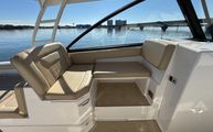 The Everglades 340 DC is loaded with features that enhance both your boating experience and your time on the water. The dual console design provides separate helm and passenger areas, ensuring comfort and convenience for everyone on board. The spacious cockpit and bow seating areas are perfect for socializing, sunbathing, or simply enjoying the view. The high-quality construction and attention to detail are evident throughout, from the premium upholstery to the thoughtfully designed storage compartments. With a length of 33.5 feet, this boat offers generous deck space, making it easy to move around and accommodate guests. The Everglades 340 DC is designed for both relaxation and adventure, with features that cater to a wide range of activities.