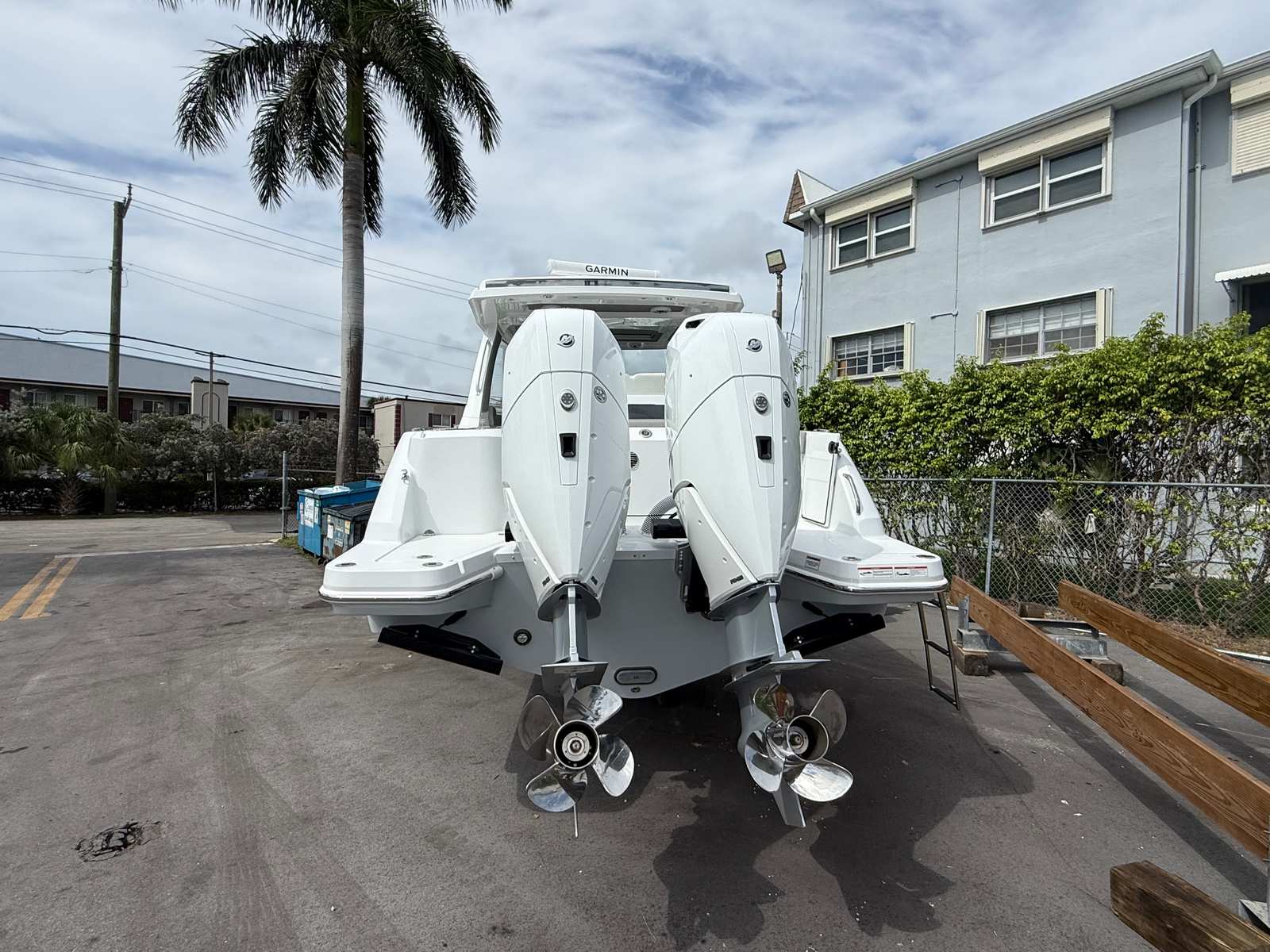 Under the hood, the Everglades 367 CX is powered by Yamaha Twin 450HP engines, delivering an impressive total of 900 horsepower. This powerhouse duo ensures exceptional speed, smooth handling, and robust performance, making every journey on the water exhilarating. The digital electric steering system enhances maneuverability, providing precise control whether you're cruising along the coast or navigating tight harbors. The white Yamaha engines not only offer powerful performance but also add a sleek, modern aesthetic to the boats overall appearance.