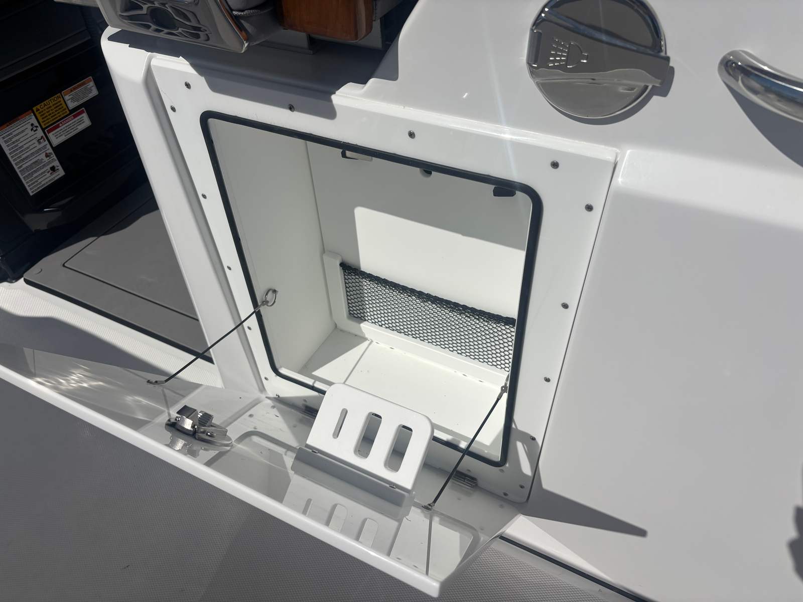 Step aboard the Everglades 375 CC and discover a world of premium features designed to enhance every aspect of your boating experience. The Flint Gray upholstery offers a modern, comfortable setting for you and your guests, while the Canvas Package provides essential protection from the elements. Anglers will appreciate the comprehensive Fishing Package, which ensures you have everything you need for a successful day on the water. The Carbon Fiber Steering Wheel Upgrade at the main station adds a touch of sport-inspired luxury and precision handling.Convenience is at the forefront with the Electrical Convenience Package, streamlining your onboard experience with advanced electrical systems. The Chiller Plate Package keeps your catch or refreshments perfectly chilled, adding to the boat’s versatility. Electrically actuated valves on thru hulls for the waste system and generator offer seamless operation and peace of mind. The Engine Flushing System for all three engines simplifies maintenance, ensuring your investment remains in peak condition.