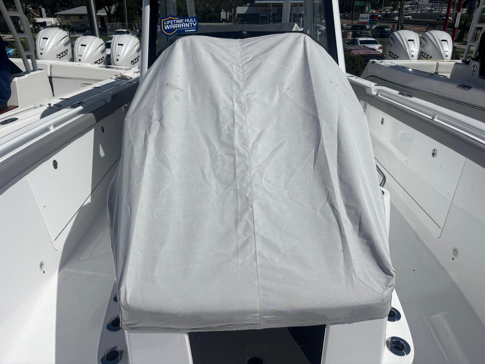 Power and precision define the performance of the Everglades 375 CC. Outfitted with triple Yamaha White 350hp engines, this center console is built for speed, agility, and reliability. With a combined 1,050 horsepower at your command, you can expect exhilarating acceleration, smooth cruising, and the confidence to tackle offshore adventures with ease. The advanced AutoPilot and Joystick system provide intuitive control, making navigation effortless even in challenging conditions. Whether you are chasing the horizon or maneuvering into a tight slip, the Everglades 375 CC delivers a responsive and enjoyable ride every time.