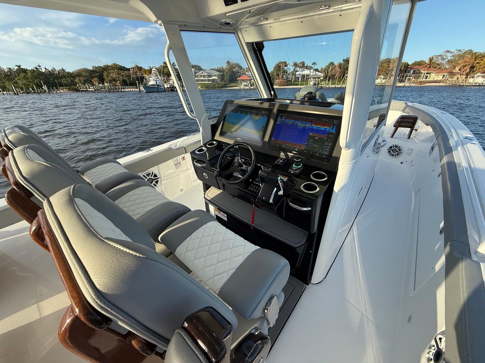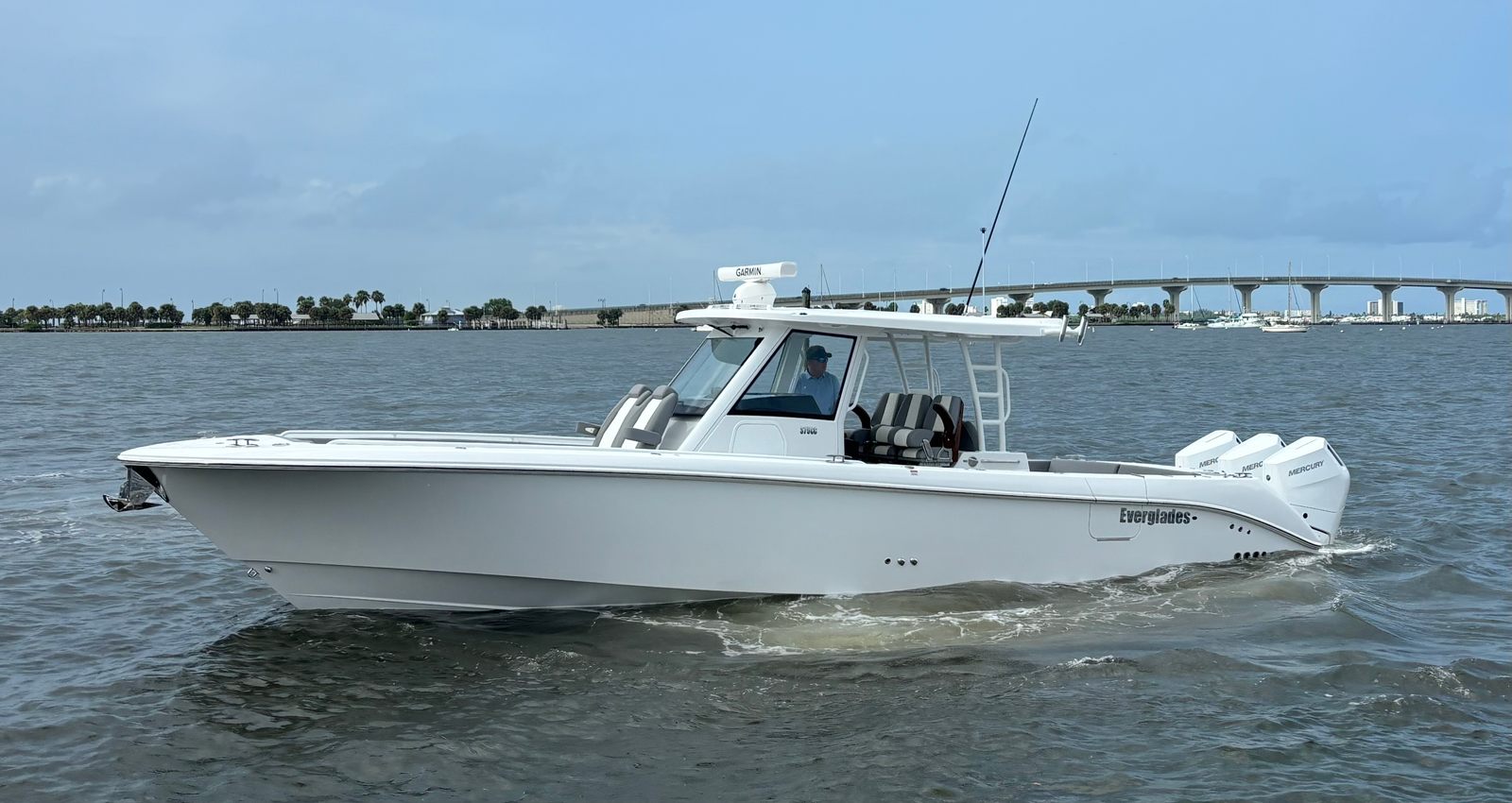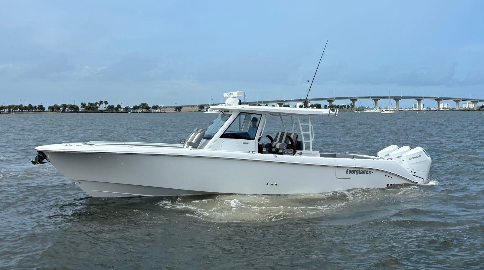 Power and precision are at the heart of the Everglades 375 CC. Equipped with triple Mercury V10 Cold Fusion White engines, each delivering 400 horsepower, this center console boat boasts a combined 1200 horsepower. This powerhouse configuration provides exhilarating speed, smooth acceleration, and exceptional handling, making it ideal for both offshore adventures and leisurely cruises. Whether you are chasing trophy fish or enjoying a day with family and friends, the 375 CC delivers the performance you need to make every outing unforgettable.