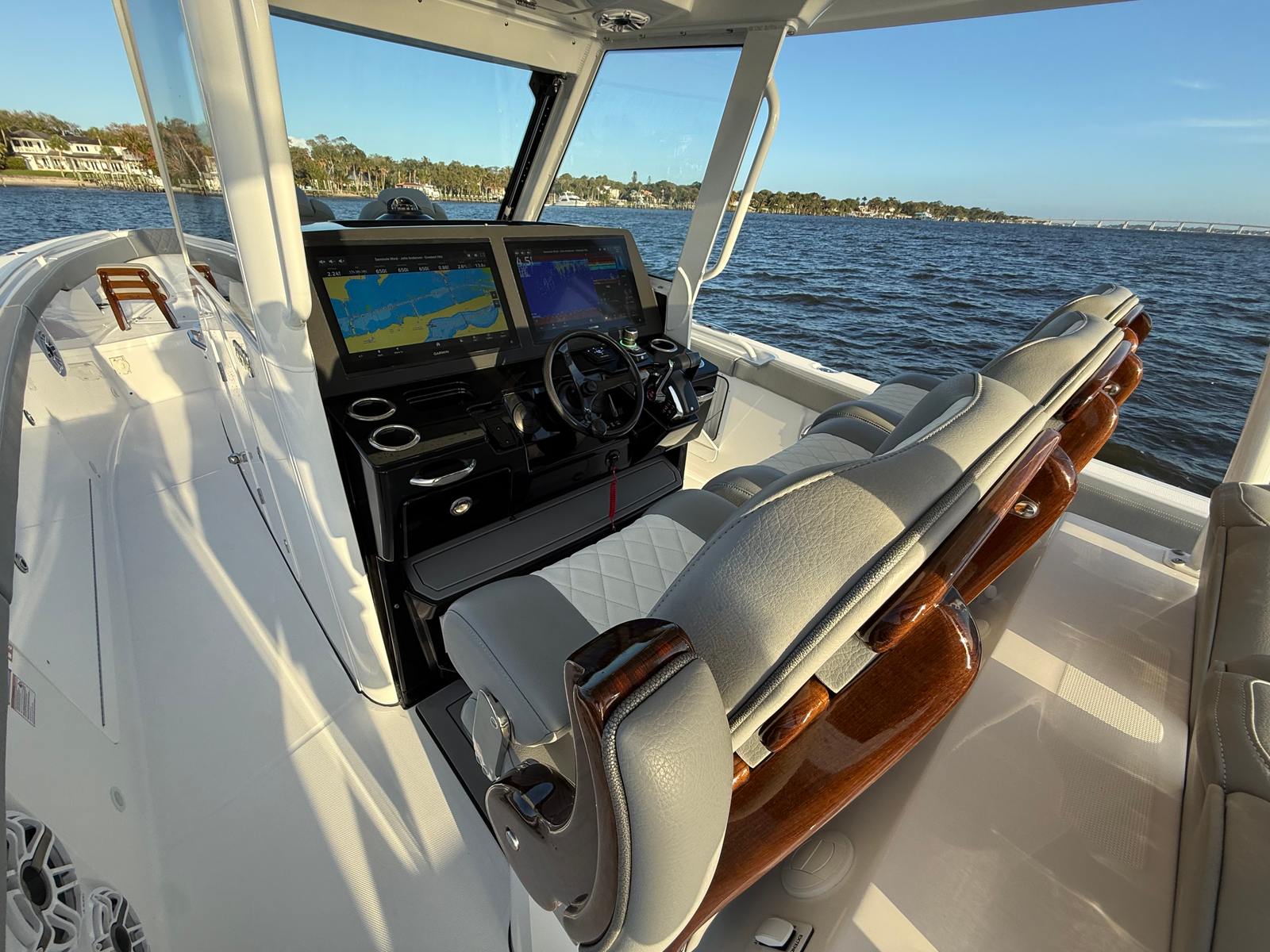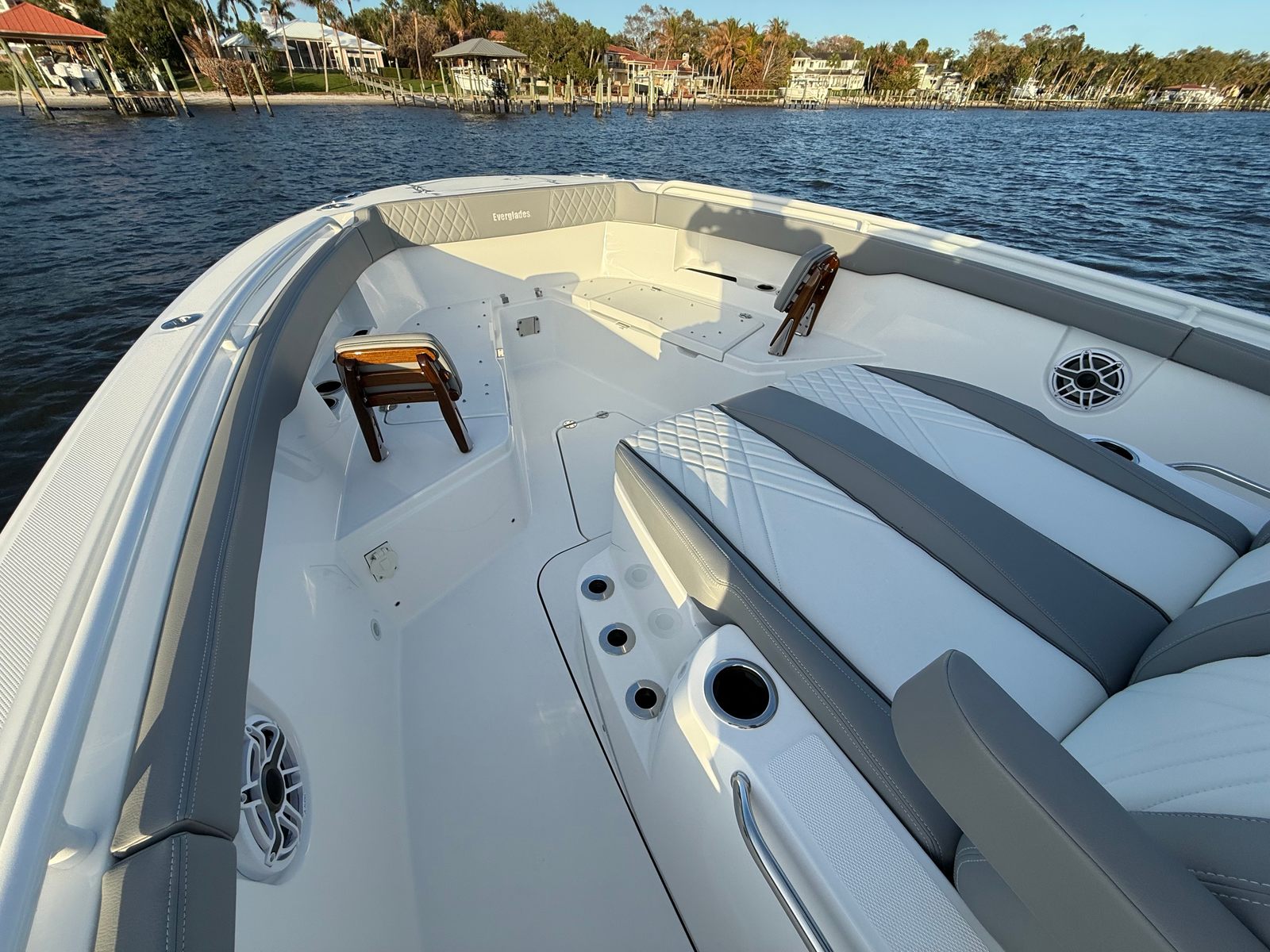Owning the Everglades 375 CC means embracing a lifestyle of fun, relaxation, and excitement. This center console boat for sale is designed to bring people together, offering spacious seating, ample deck space, and thoughtful amenities that cater to both serious anglers and casual cruisers. The combination of powerful engines and advanced stabilization ensures a comfortable ride, allowing you to explore new destinations with confidence.The premium audio system sets the mood for any occasion, whether you are hosting a sunset cocktail party or enjoying a solo day on the water. The chiller plate keeps your beverages and snacks cool, while the teak bow backrest invites you to unwind and soak up the sun. With its fishing package, you can easily transition from family fun to serious sportfishing, making every trip uniquely yours.