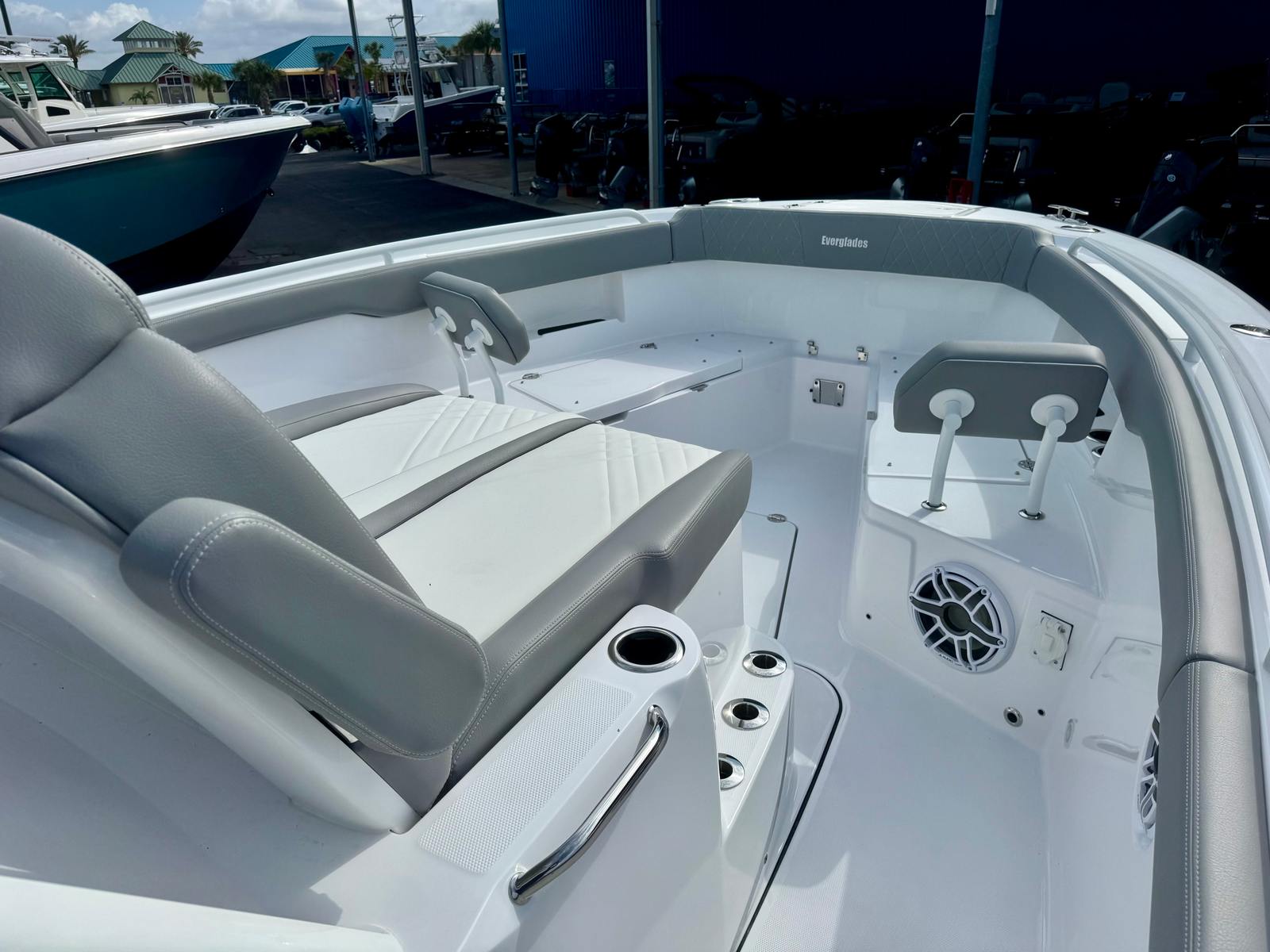 The versatility of the Everglades 375 CC makes it the perfect choice for a wide range of boating adventures. For families, the spacious deck and comfortable seating provide an ideal setting for day trips, picnics, and water sports. Anglers will appreciate the advanced fishing amenities, from the rod holders and fillet table to the state-of-the-art outriggers, making this center console boat a top contender for offshore tournaments and weekend fishing trips.If luxury getaways are more your style, the elegant finishes, ample shade, and plush seating create a resort-like atmosphere on the water. Whether you are exploring hidden coves, anchoring at a sandbar, or cruising along the coastline, the Everglades 375 CC delivers the perfect blend of performance, comfort, and style.