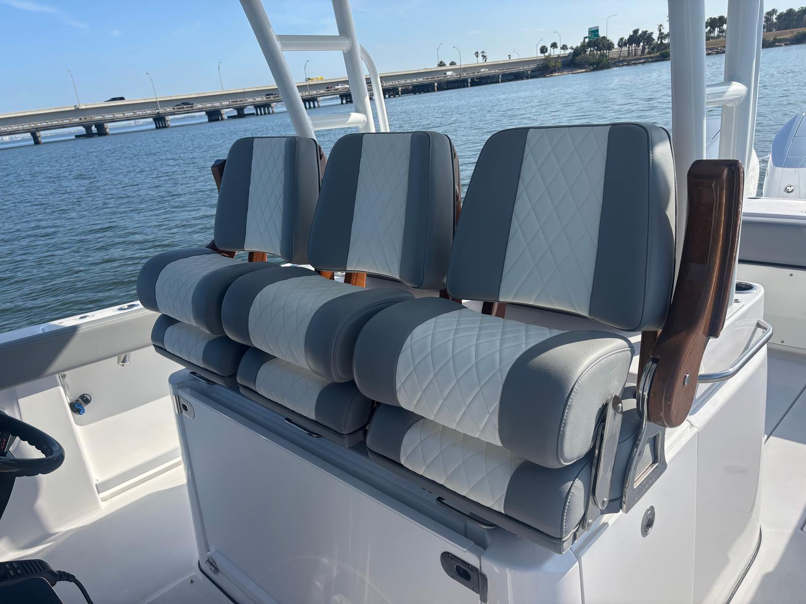 - Canvas Package - Console Cover, Forward Console Seat Cover, Helm Seat Cover, Bow Seating Accent and Backrest Covers, Mezzanine Seat or Rigging Station Cover