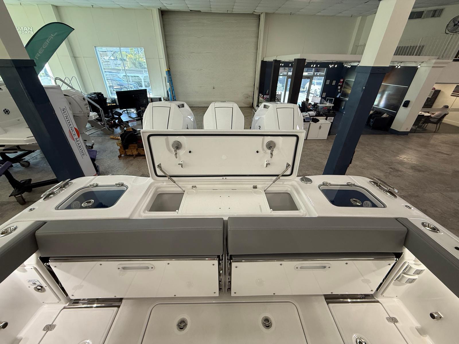 Power and precision are at the heart of the Everglades 375 CC. This Center Console boat is equipped with triple Mercury V10 Cold Fusion engines, each boasting an impressive 425 horsepower, for a combined total of 1275 horsepower. These engines are renowned for their smooth operation, fuel efficiency, and robust acceleration, ensuring that you can reach your favorite fishing spots or cruising destinations quickly and effortlessly. Whether you’re navigating coastal waters or heading offshore, the Everglades 375 CC’s powerful engine configuration provides the confidence and capability you need for any adventure.