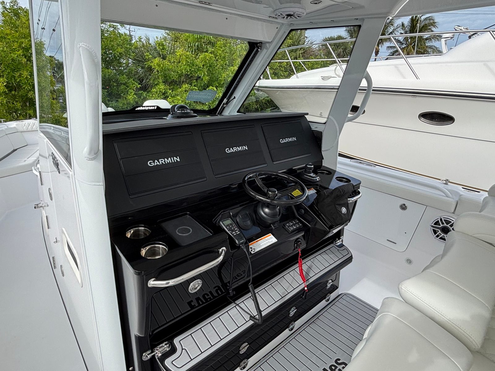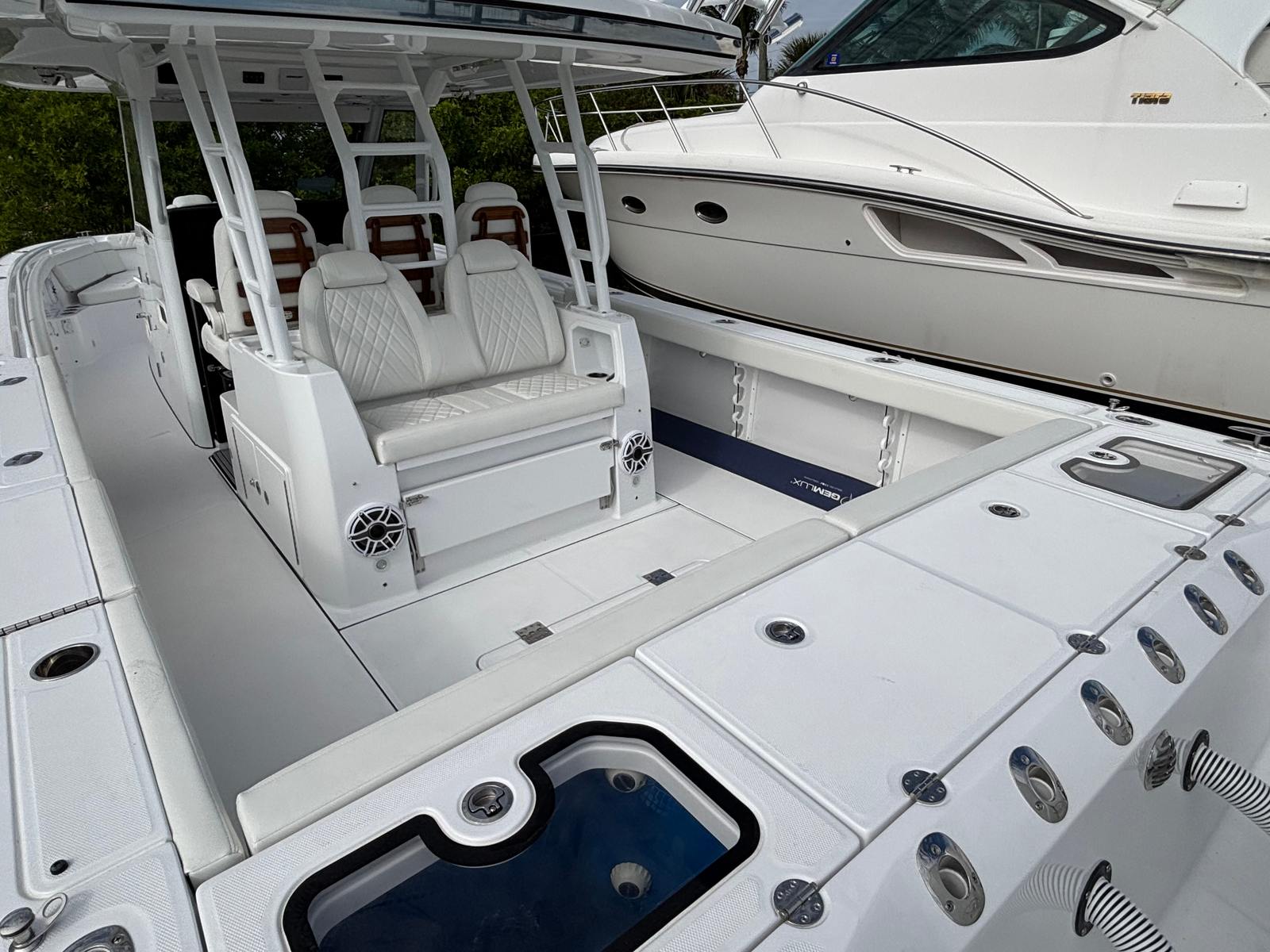 This Everglades boat for sale is loaded with premium features that elevate your boating experience. The Teak Ladder Back Triple Helm Seat provides both comfort and style, allowing you and your crew to command the vessel in ergonomic luxury. The Pocket Transducer PM265LM Chirp Airmar with deep water capabilities ensures superior fish-finding and navigation, making this center console ideal for serious anglers and explorers alike.Enjoy climate-controlled comfort with air conditioning for both the mezzanine and helm seats, ensuring you stay cool and refreshed even on the hottest days. The shock-mitigating helm seat pedestals further enhance comfort, absorbing vibrations and reducing fatigue during long journeys. Outriggers, paired at 22 feet, expand your fishing potential, while the JL Speakers LED M6 Upgrade delivers crystal-clear sound and vibrant LED lighting for an immersive entertainment experience.The Premium Package and hull sides-only design add a touch of exclusivity and refinement, ensuring your Everglades 395 CC stands out in any marina. The orientation program provides new owners with a seamless introduction to the boat’s features and operation, making it easy to get started and maximize your enjoyment from day one.