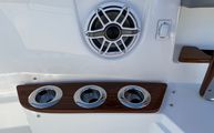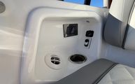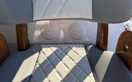 Features and SpecificationsThe Everglades 455 CC is packed with premium features that elevate your time on the water. The full upper station includes a sun top for shade, two drink holders for convenience, folding helm seat bolsters for comfort, a stainless steel grab rail for safety, and a glove box for secure storage. The helm is equipped with a Garmin GHS 11 handset and an additional Garmin 8616 screen, providing advanced navigation and communication capabilities. The interior cabinet color is Ocean (Teak & Holly), adding a touch of elegance to the cabin space, while the Flint Gray upholstery offers a modern and inviting atmosphere.A comprehensive canvas package is included, featuring covers for the forward console seat, console, helm seat, mezzanine seat, bow seats, second row, and forward rod/cup holders. These covers help protect your investment and keep the boat looking pristine. The upper station, seat, and console are all thoughtfully designed for maximum comfort and utility, ensuring that every outing is enjoyable and stress-free.