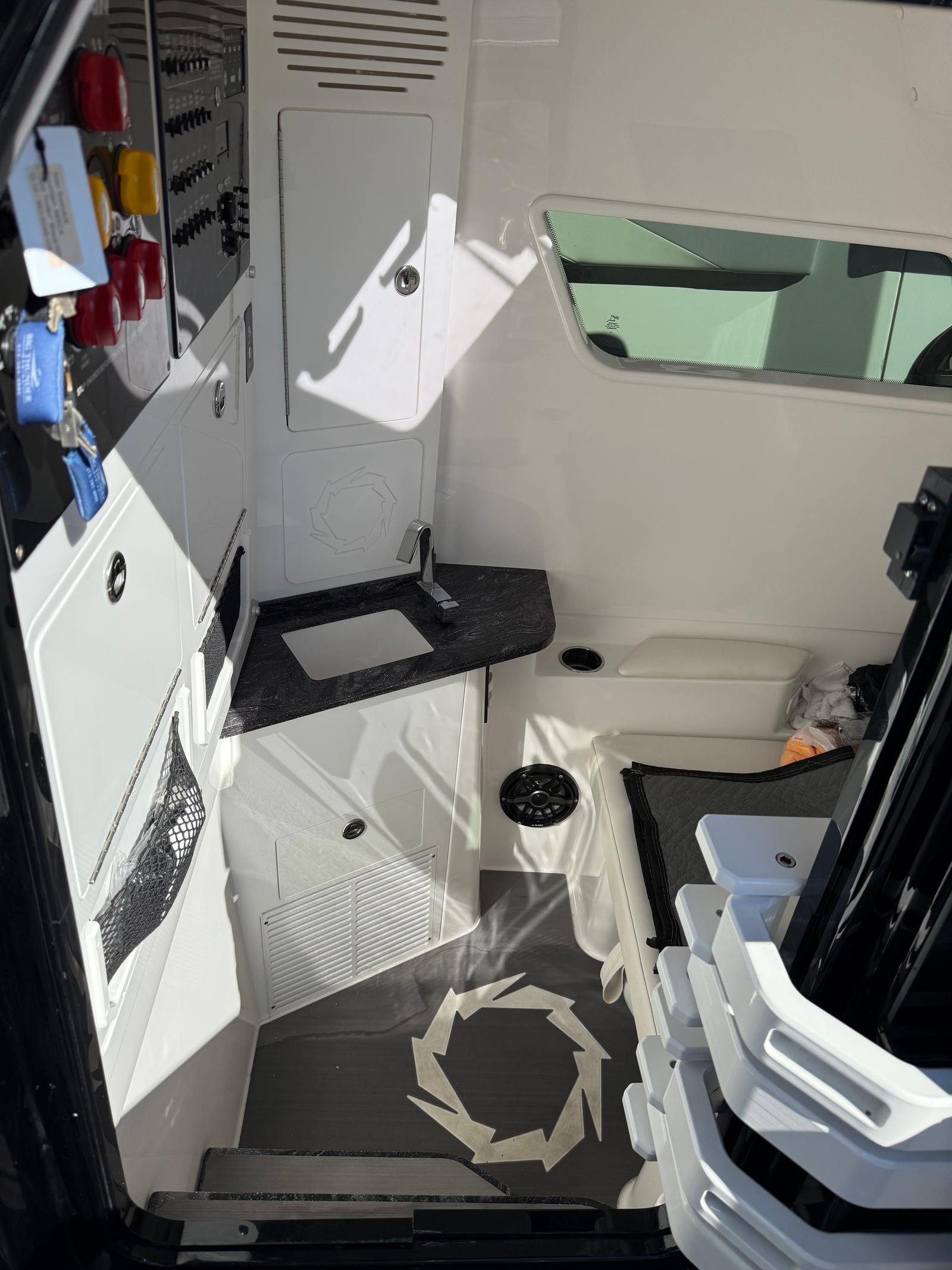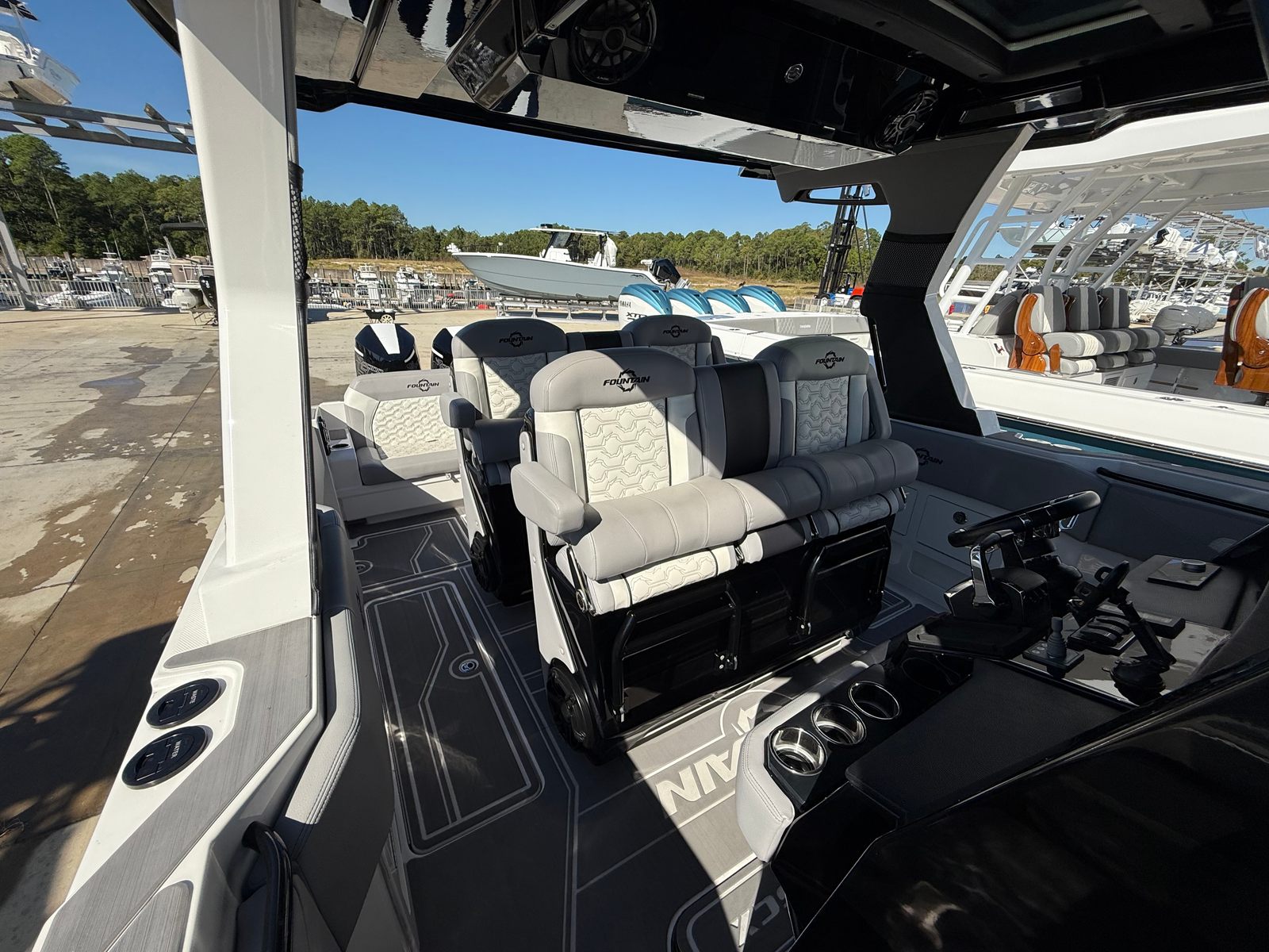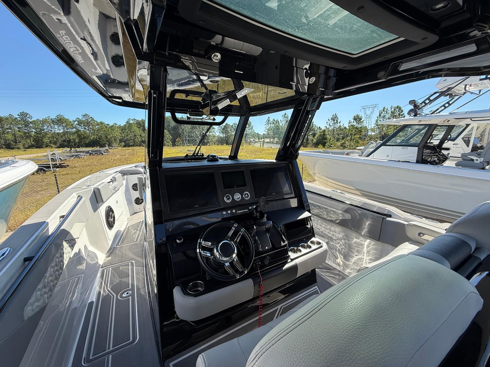 At the heart of the Fountain 38 SCX lies a powerful trio of engines, delivering a combined 1350 horsepower. With only 146 engine hours, these motors are primed for many more seasons of exhilarating performance. The triple-engine configuration ensures rapid acceleration, impressive top speeds, and smooth handling even in challenging conditions. Whether you’re navigating choppy waters or cruising at high speeds, the Fountain 38 SCX responds with precision and agility. This Center Console boat for sale is built for those who demand superior performance and reliability, making it ideal for both seasoned boaters and newcomers alike.