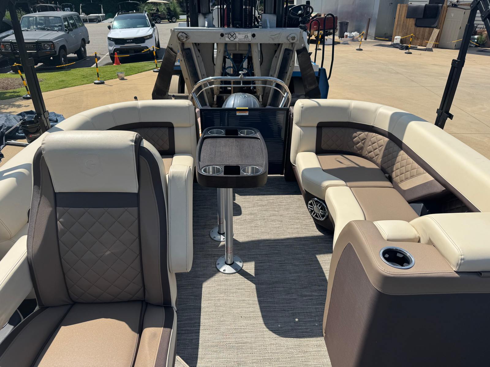 The Godfrey AP 215 SBC is thoughtfully designed to maximize comfort, convenience, and enjoyment on the water. Its spacious deck layout offers ample room for passengers to relax, socialize, and move about freely. The pontoon’s nearly 22-foot length provides a stable and secure platform, making it ideal for gatherings, celebrations, or quiet escapes.Special features of this model include plush seating arrangements that invite you to unwind and enjoy the scenery. The open floor plan is perfect for hosting friends and family, with plenty of space for lounging, dining, or playing games. The pontoon’s sturdy construction and quality materials ensure durability and longevity, even with regular use.