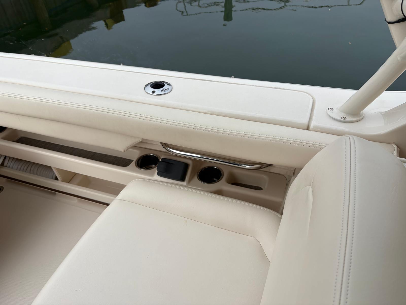 Powered by twin engines delivering a combined 600 horsepower, the Grady-White Freedom 307 offers exhilarating performance and smooth handling. The dual engines provide impressive acceleration, responsive maneuverability, and the confidence to tackle a variety of water conditions. Whether you are cruising along the coastline, heading offshore for a day of fishing, or enjoying water sports with family and friends, this Dual Console boat for sale delivers the power and reliability you need. The robust engine setup ensures that you can reach your favorite destinations quickly and efficiently, making every outing more enjoyable.