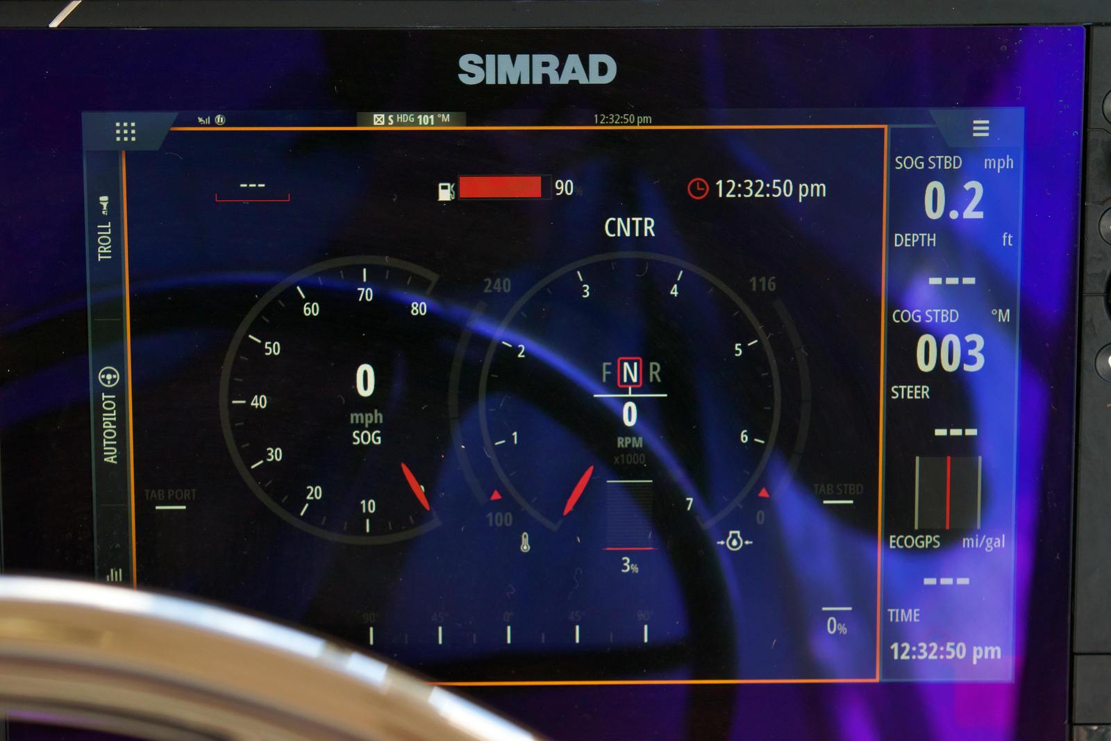 The Grady-White 335 Freedom is packed with features that enhance both functionality and enjoyment on the water. Its dual console layout offers versatility, allowing for easy transitions between cruising, fishing, and entertaining. The spacious cockpit and bow seating areas provide plenty of room for guests to relax and socialize, while the well-designed helm with modern Simrad radar and navigation displays ensures that the captain has everything needed for a smooth and enjoyable ride.This model is known for its high-quality construction and attention to detail, with premium materials used throughout. The overall length offers generous deck space, making it ideal for hosting gatherings or enjoying a peaceful day on the water. The dual console design also provides excellent protection from the elements, allowing you to extend your boating season and enjoy your investment in a variety of weather conditions.
