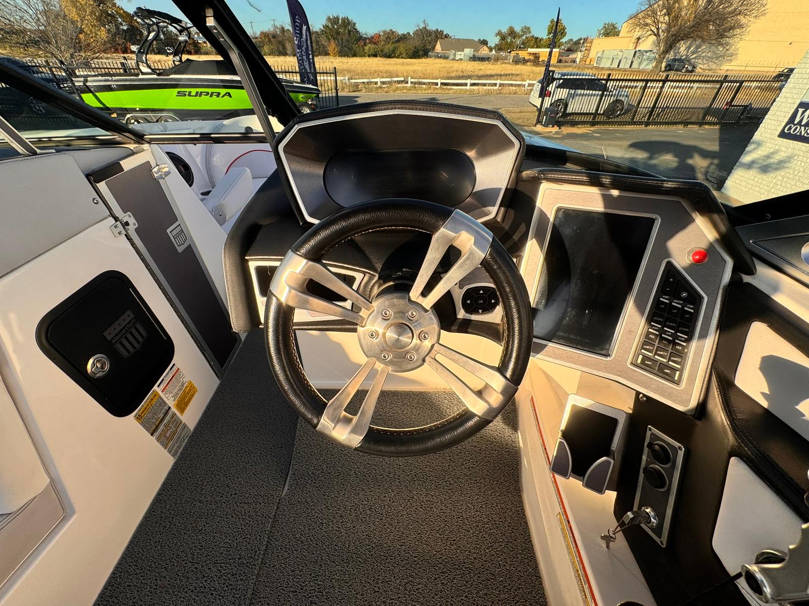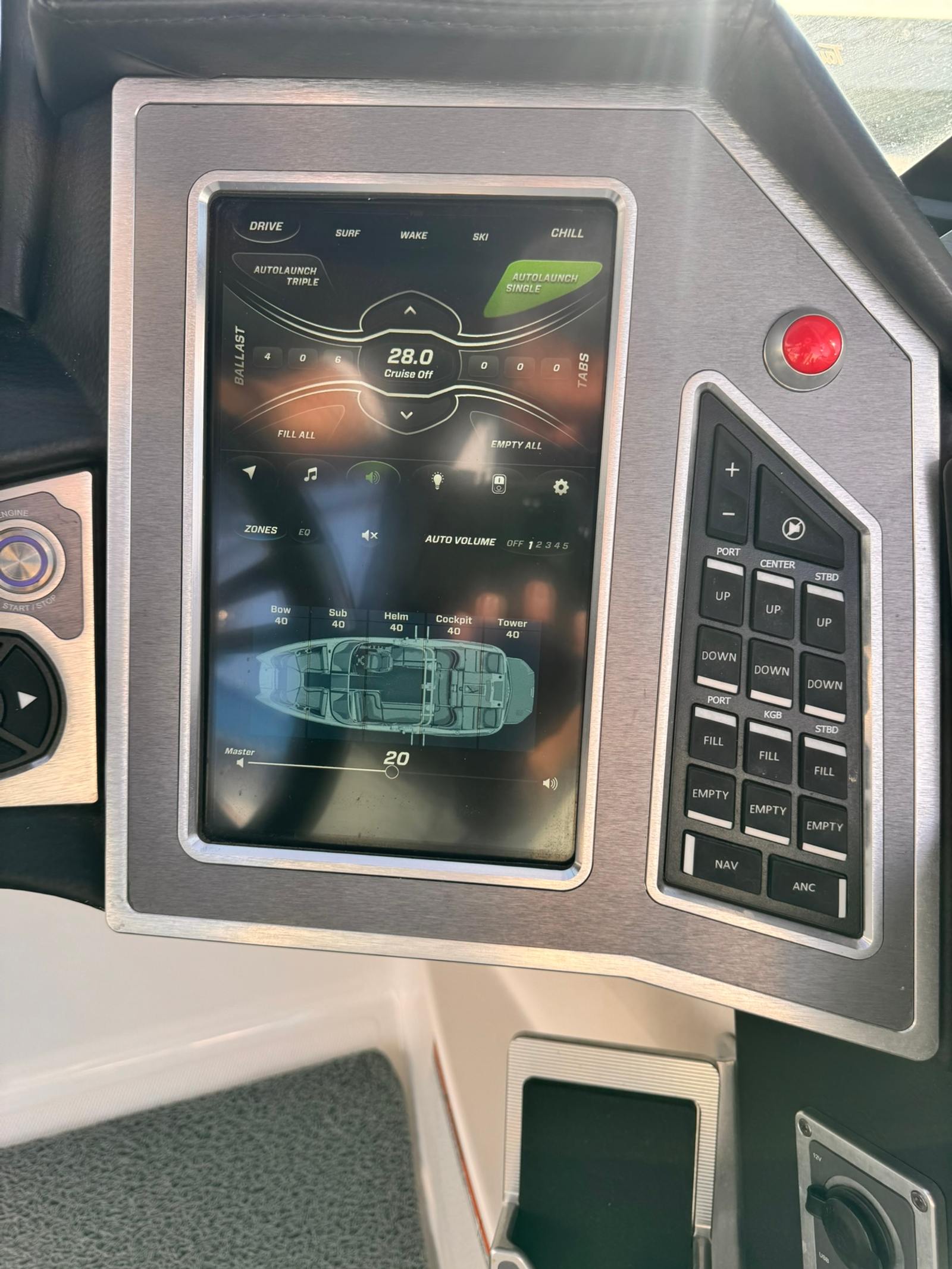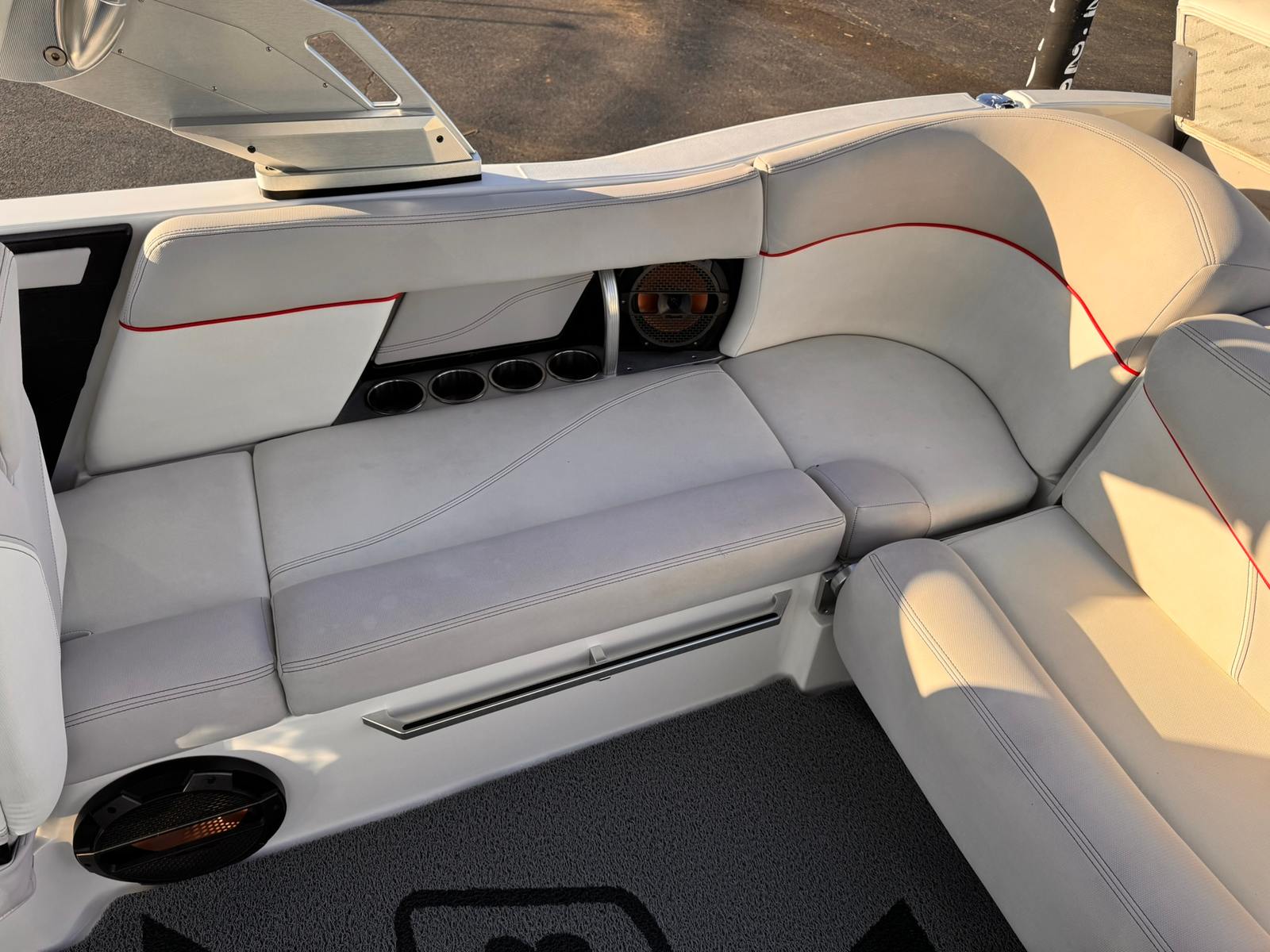 Designed for world-class wakes and waves, this boat features Gen 2 Surf System, subfloor ballast with plug-and-play rear bags, premium audio, advanced touchscreen controls, and luxury seating throughout.